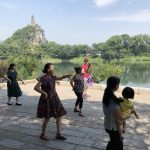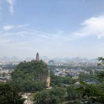 Danach stiegen wir noch auf eine kleine Aussichtsplattform auf dem Mondberg. Dieser wird auch „Durchbrochener Berg“ gennant, weil man durch eine große Höhle durch den Berg hindurchsehen kann. Hier hatten wir noch einmal einen schönen Blick über Guilin und auf die Pagode des Langen Lebens auf dem Berg gegenüber. Es heißt, dass man 100 Jahre alt wird, wenn man die Pagode besucht. Kann ja auch eine Strafe sein, meinten unsere Berliner trocken. 😉