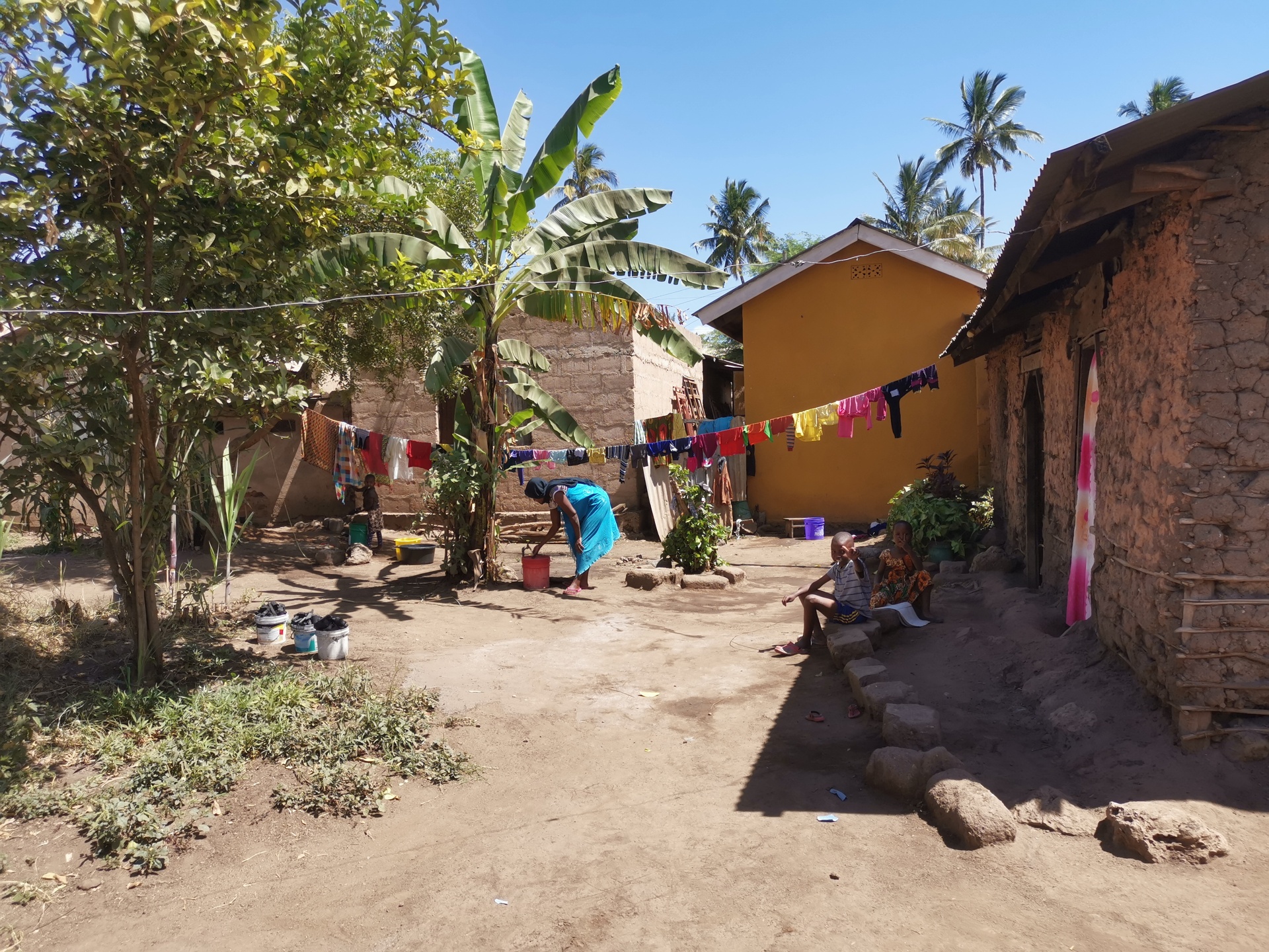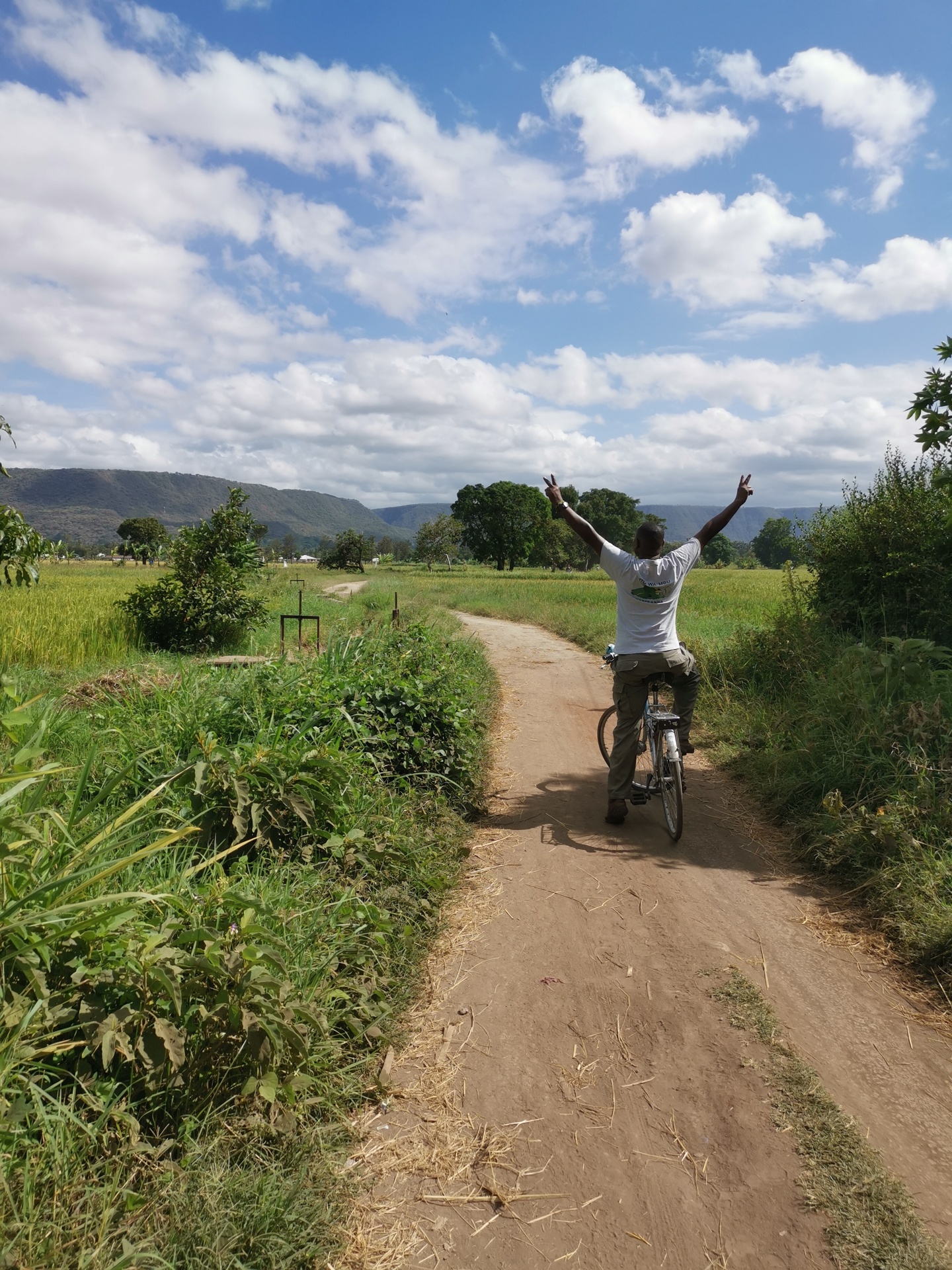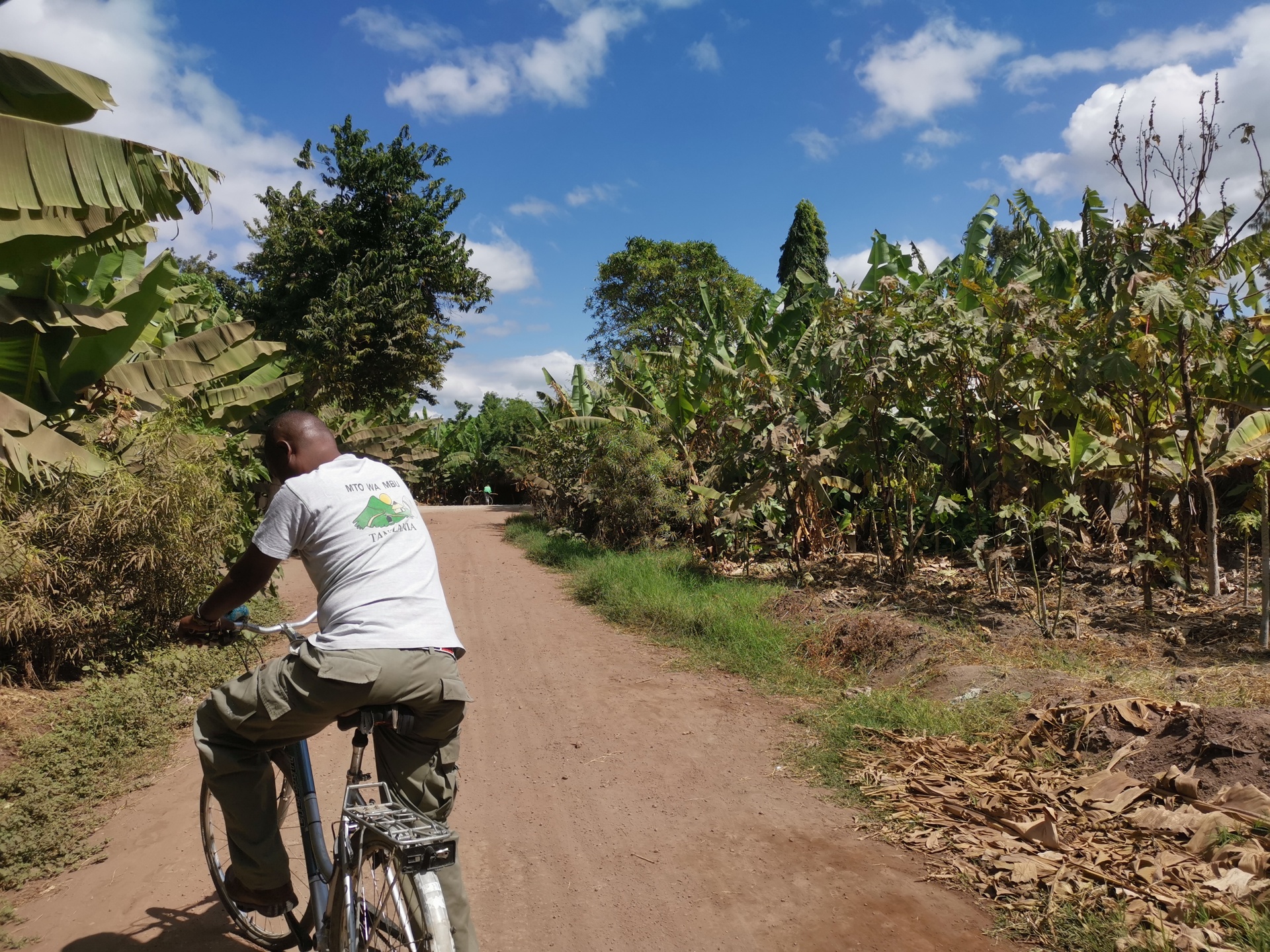 Zum Mittag gab es leckeres, tansanisches Essen. Da die Wege fürs Fahrrad sehr uneben und extrem matschig waren, stiegen wir ab und machten den Rest zu Fuß.