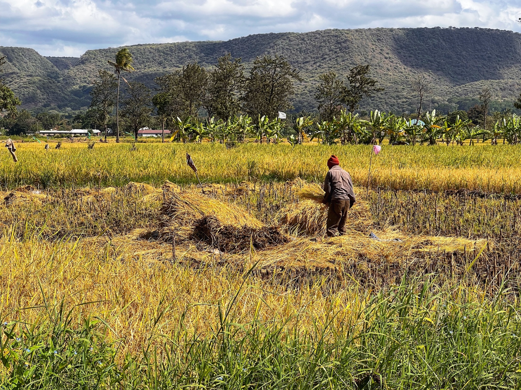 Eine kleine Fahrradtour stand auf dem Tagesprogramm. So starteten wir mit unserem lokalen Führer Josef vorbei an saftig, grünen Reisfeldern. Er erklärte uns, wie der Reis mit Hand gesäht, einzeln eingesetzt und geerntet wird. Alles pure Handarbeit!