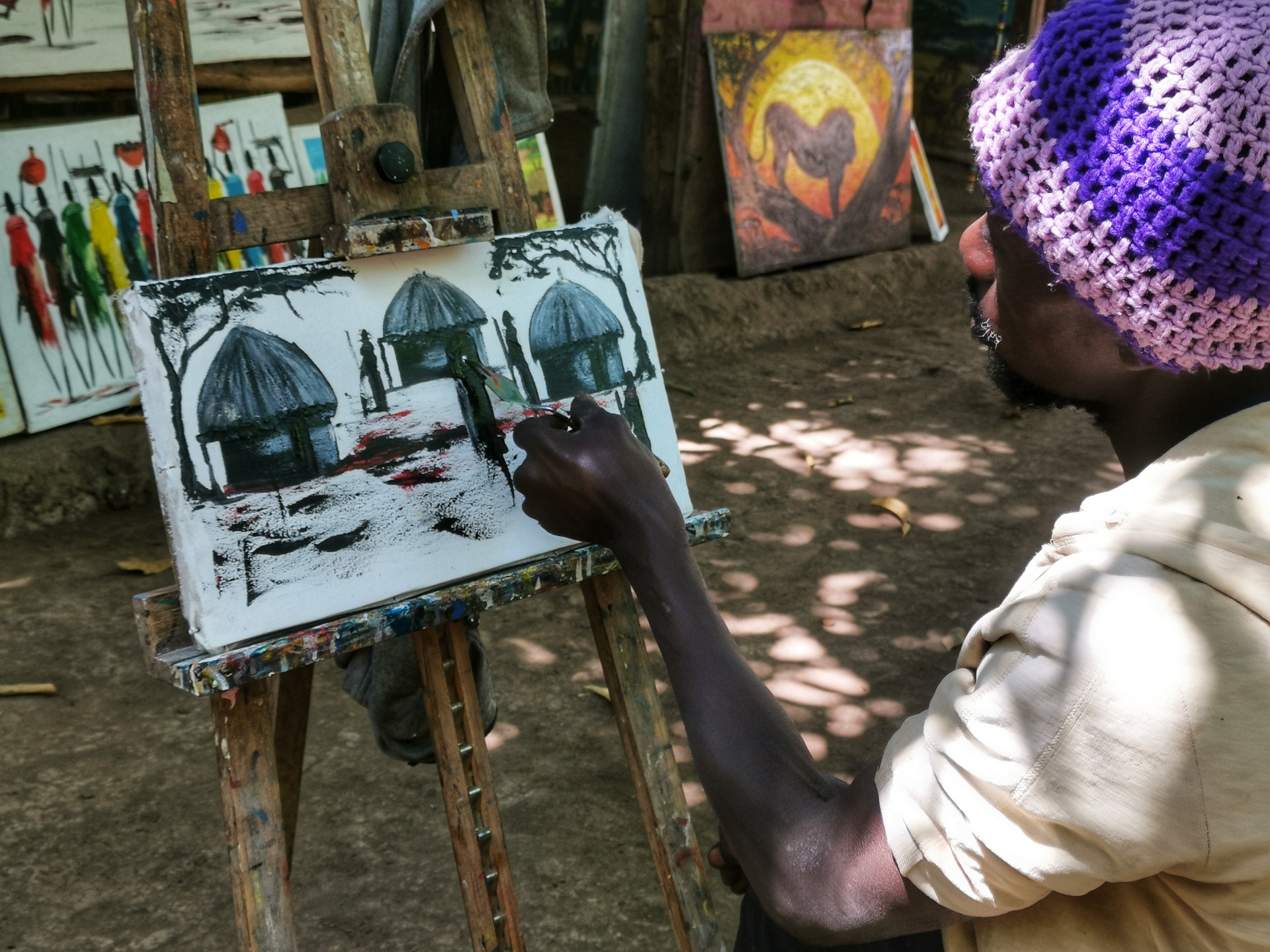Weiter ging es ins Dorf, wo wir das traditionelle Leben kennen lernen durften. Wir besuchten private Wohnungen, die lokale Schule, den Markt mit allem, was man zum Leben braucht und verschiedene Stämme, die unterschiedliches Kunsthandwerk anboten, beispielsweise Holzschnitzereien oder Malerei. Es war sehr interessant, und die Menschen sind unendlich freundlich. Am Straßenrand winken die Kinder und freuen sich.