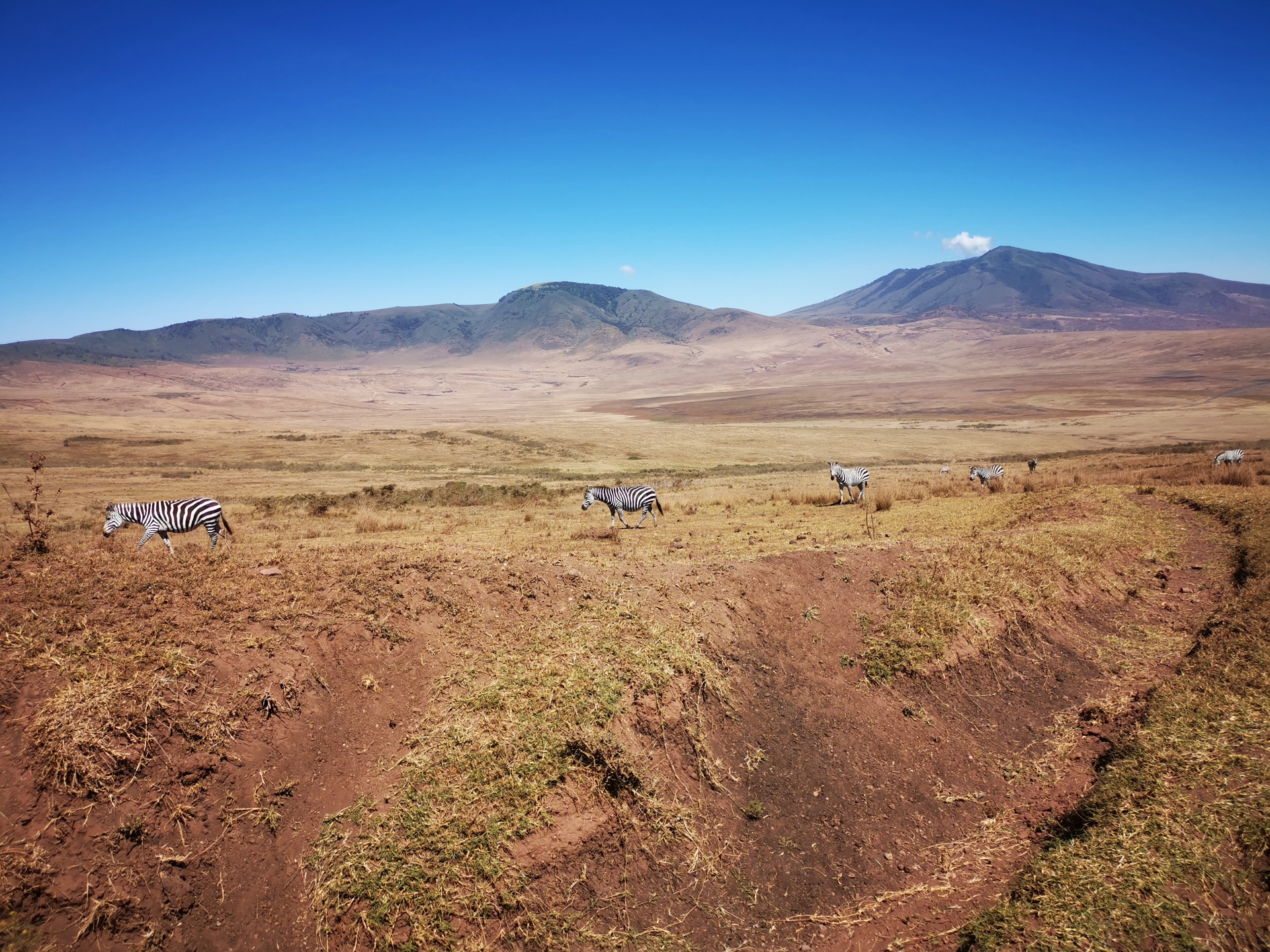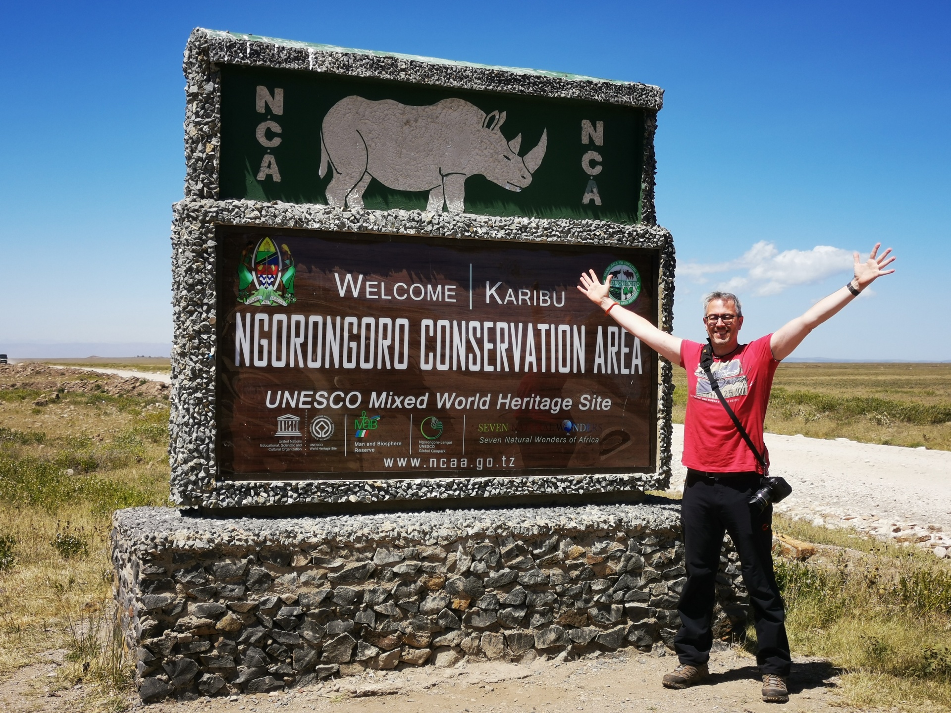 Unser erster Stopp war der Ngorongoro Krater Aussichtspunkt, wo man von 2200 Metern Höhe in die 600 Meter tiefer gelegene Krater Ebene schauen kann. Eine Fahrt in den Krater hinein ist erst in ein Paar Tagen geplant