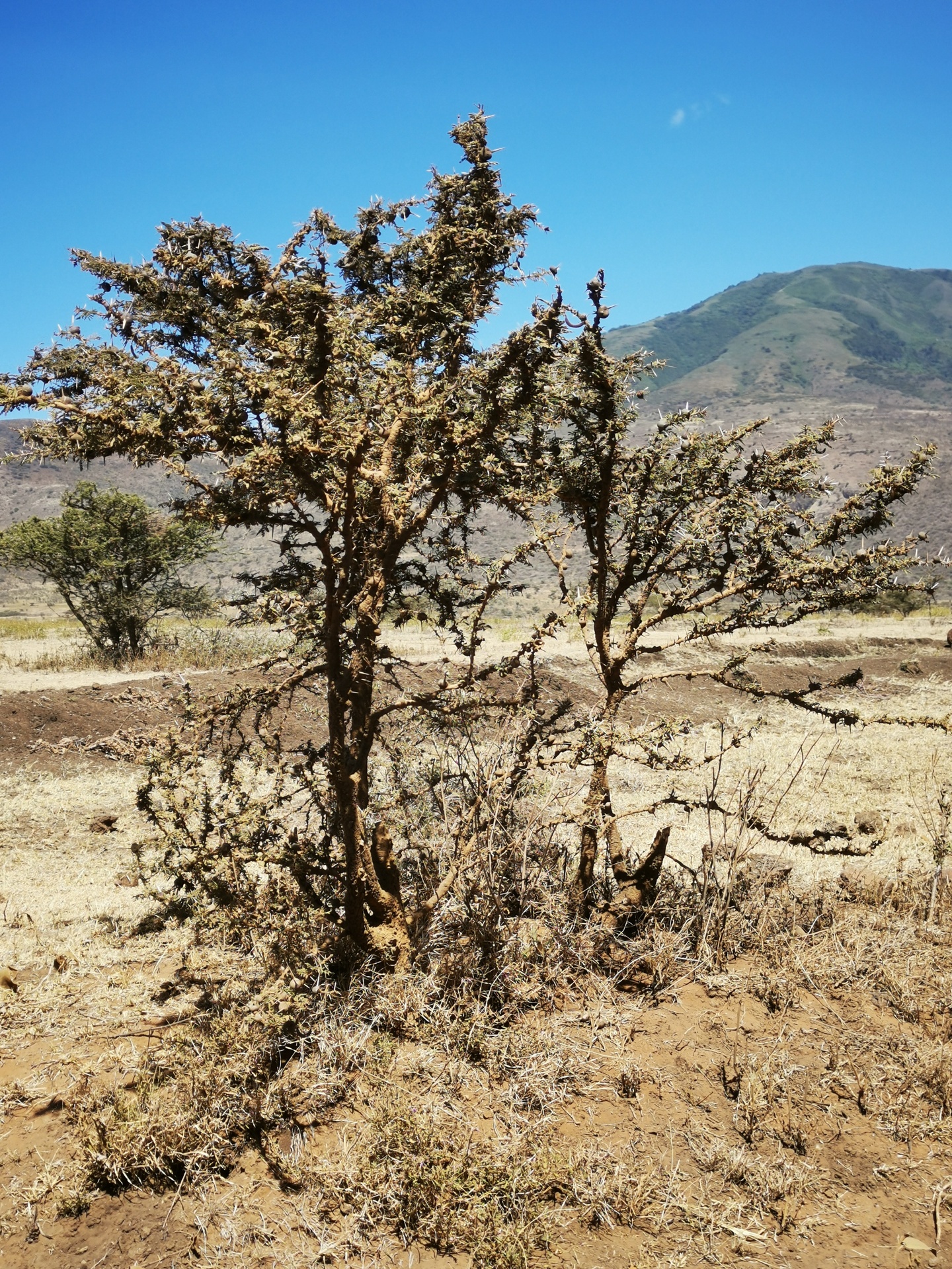 Die Landschaft ist ganz anders als bisher. Eine ganz flache Savanne mit nur ein paar einzelnen Akazienbäumen.