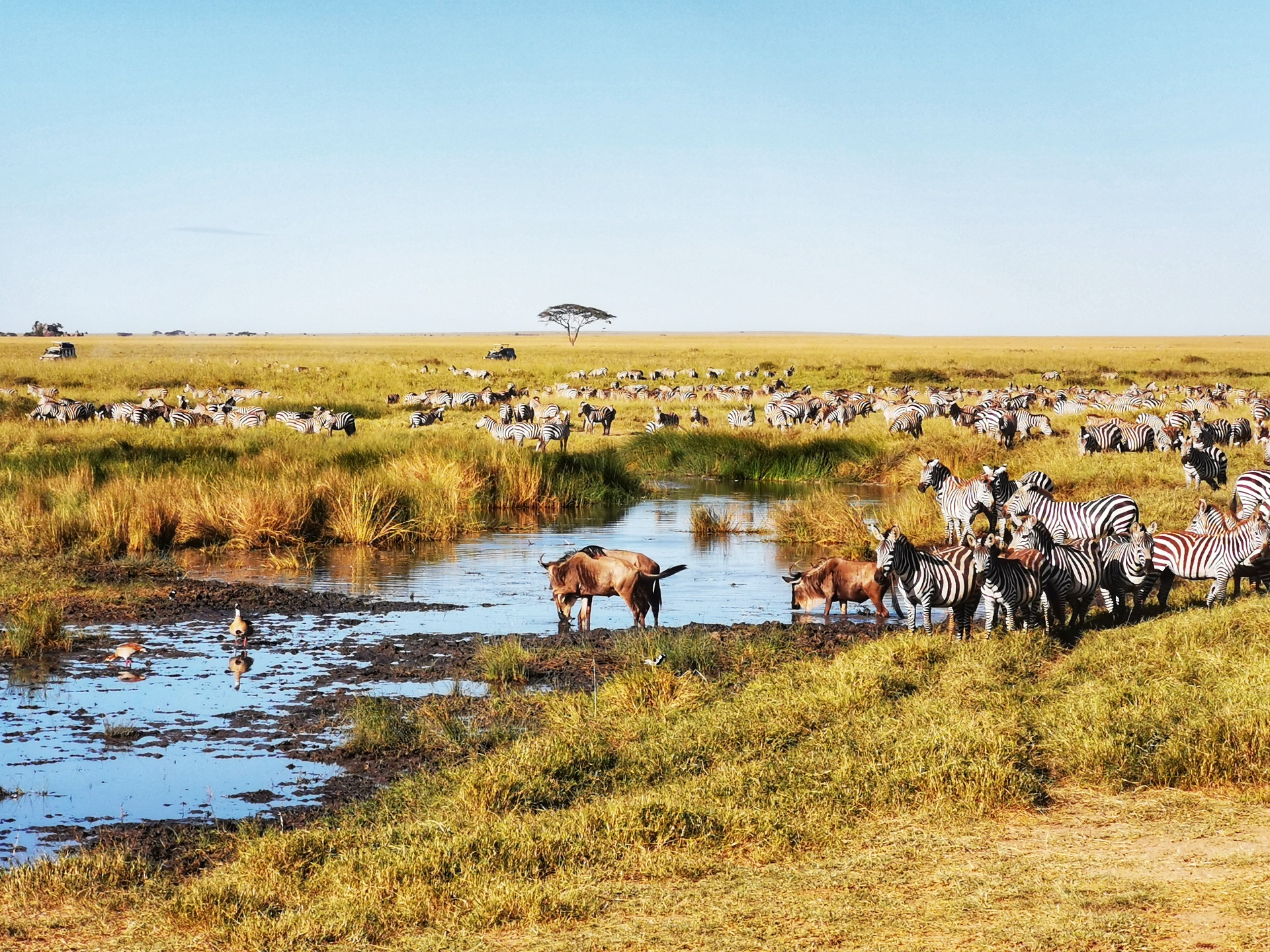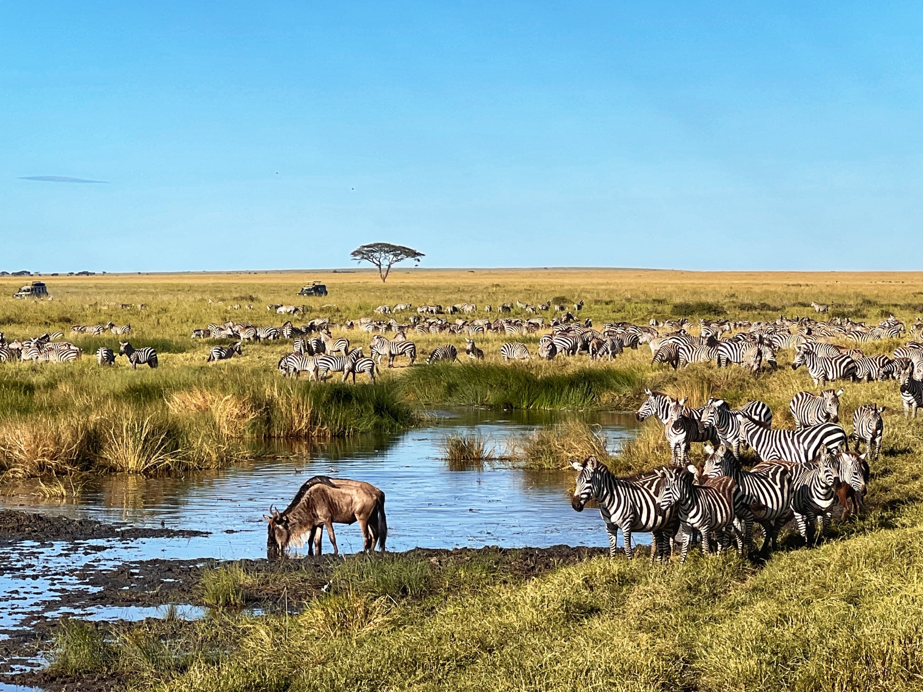 Je weiter wir fuhren desto, mehr Zebras begneten wir und plötzlich befanden wir uns mitten in der großen Wanderung. Ein unglaubliches Gefühl umgeben von mehreren tausend Zebras und Gnus, die sich alle in eine Richtung bewegten. Absolut faszinierend!