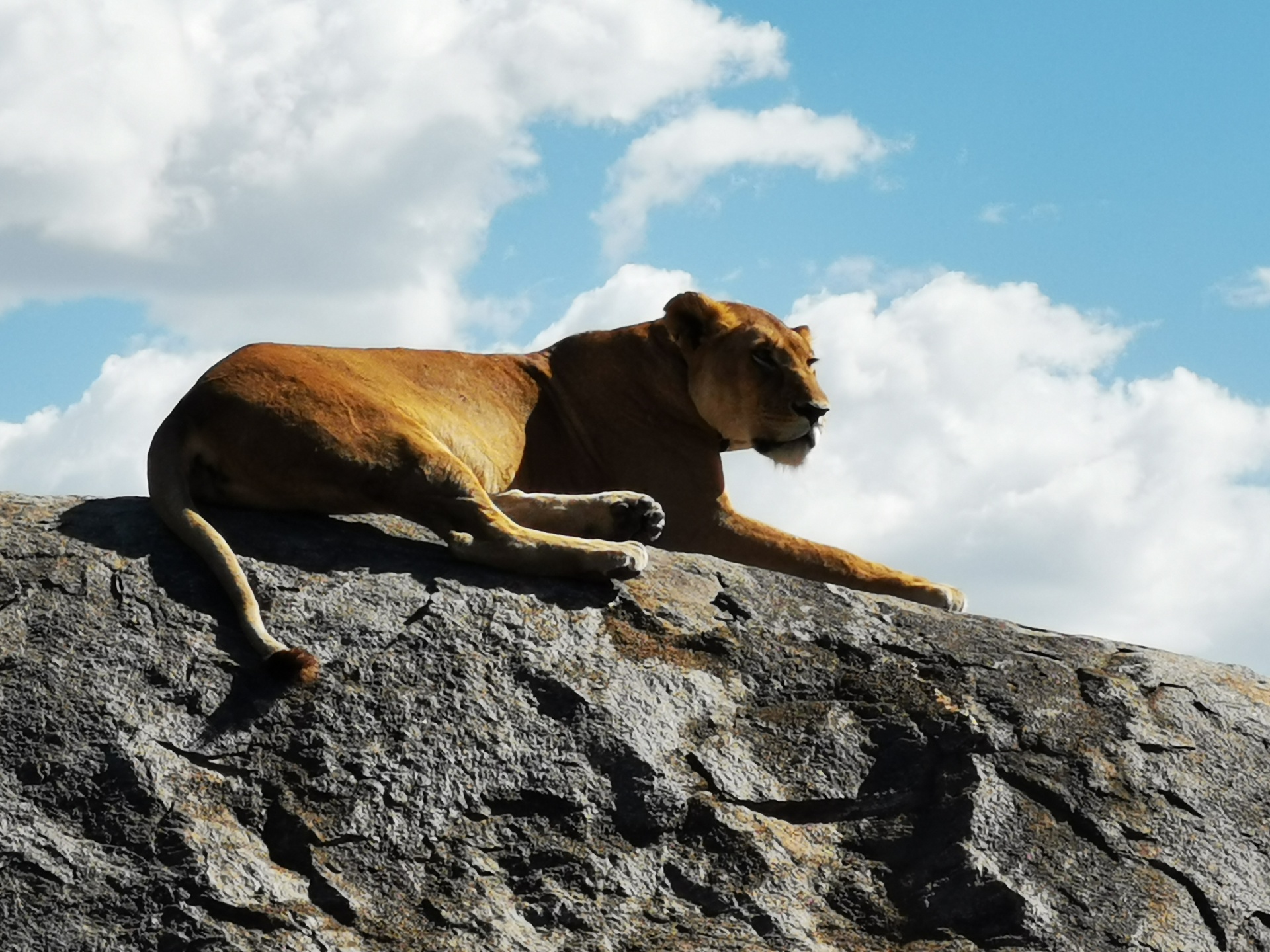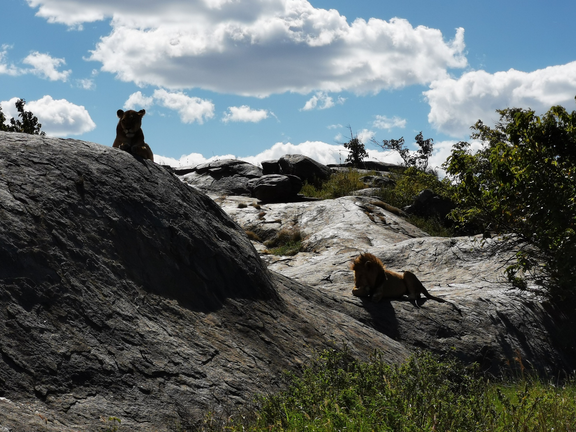 Eine Menge Tiere konnten wir beobachten wie Giraffen, Elefanten und eine riesige Anzahl verschiedener Antilopen. Das nächste Highlight ließ nicht lange auf sich warten. Wir entdeckten zwei Löwen faul in der Sonne auf einem Felsen.