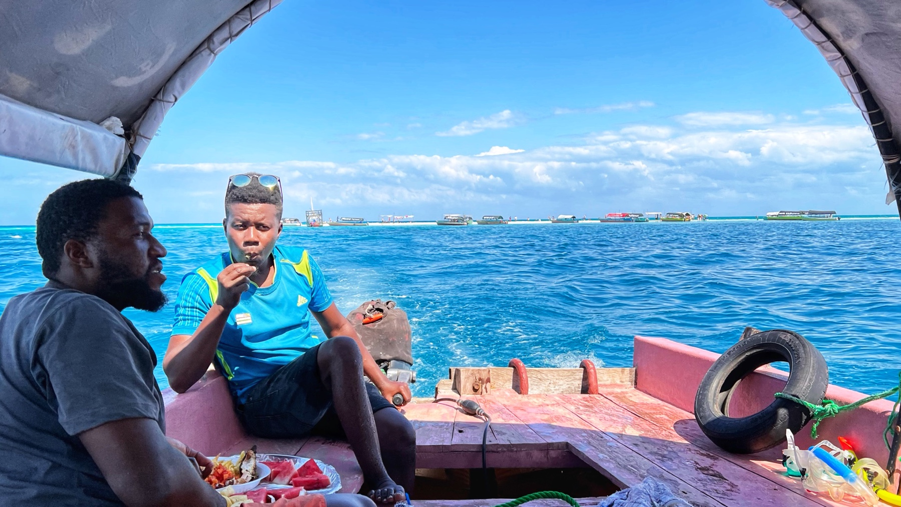 So machten wir uns heute erneut auf den Weg nach Stown Town zum Hafen, wo wir mit einem kleinen Boot nach Nakupenda fuhren. Nakupenda ist eine Sandbank mitten im Meer und heißt übersetzt „Ich liebe dich“. Sie ist nur am Vormittag zu besuchen, da sie am Nachmittag durch die Flut vom Meer überspült wird.