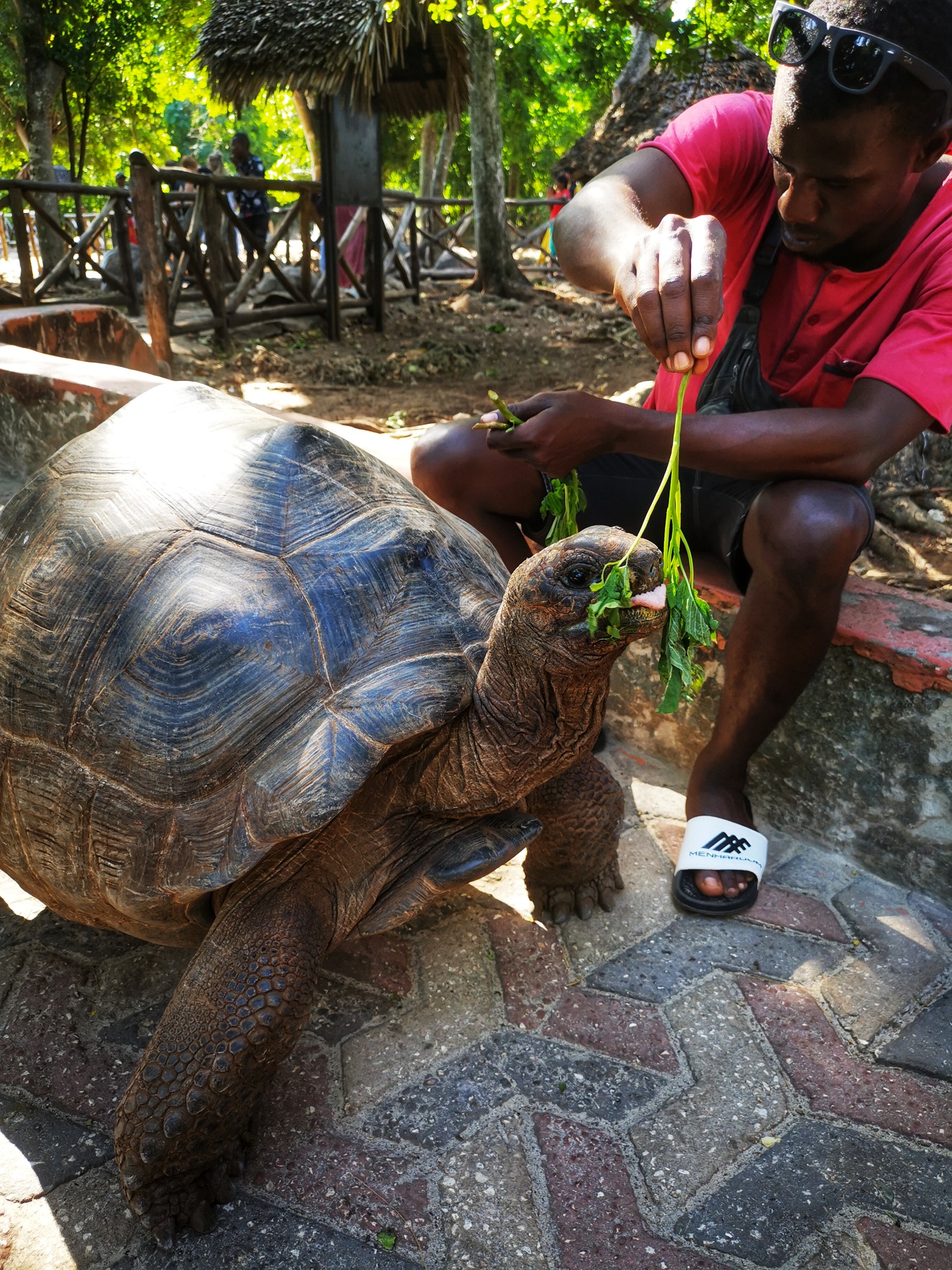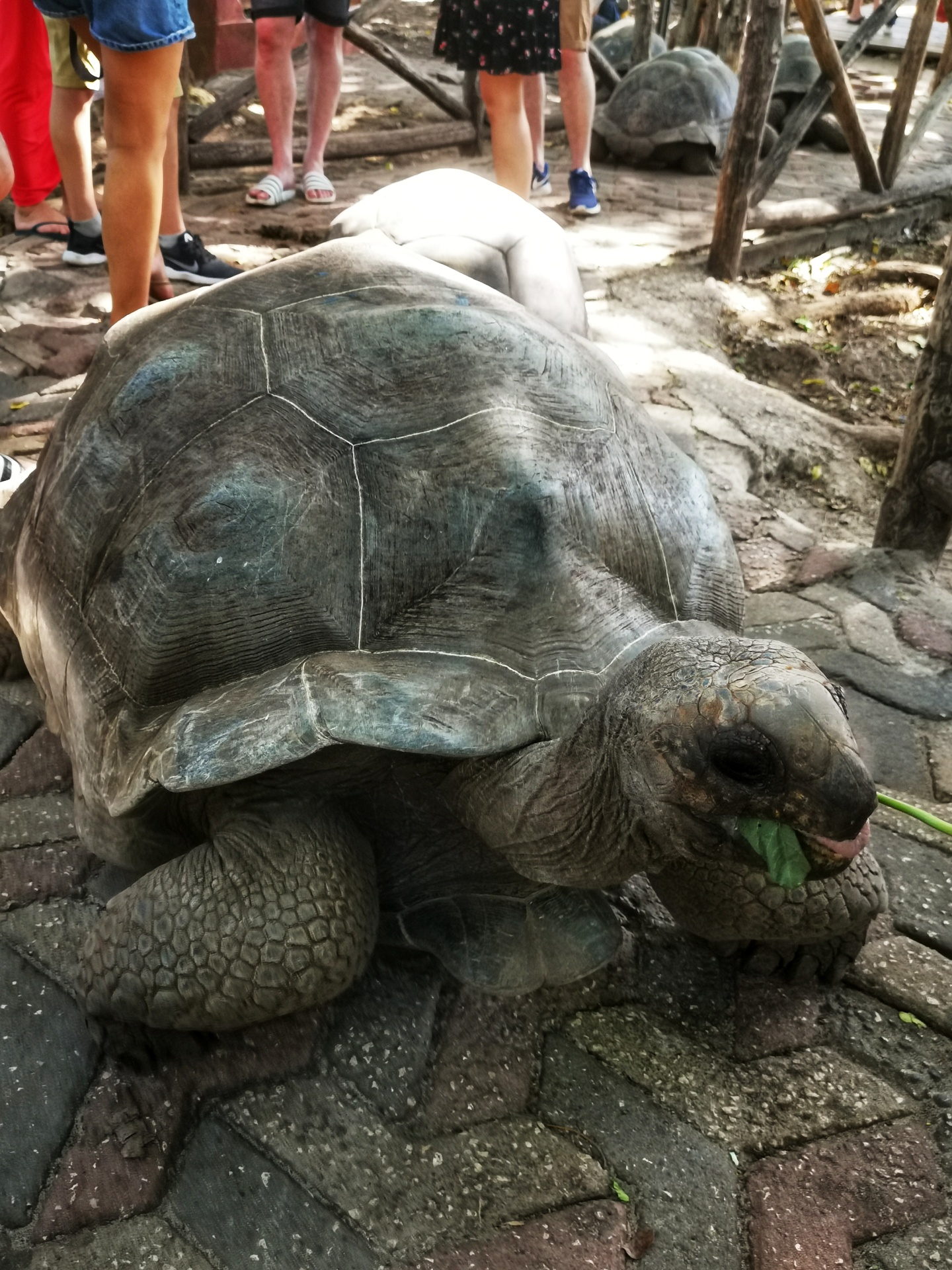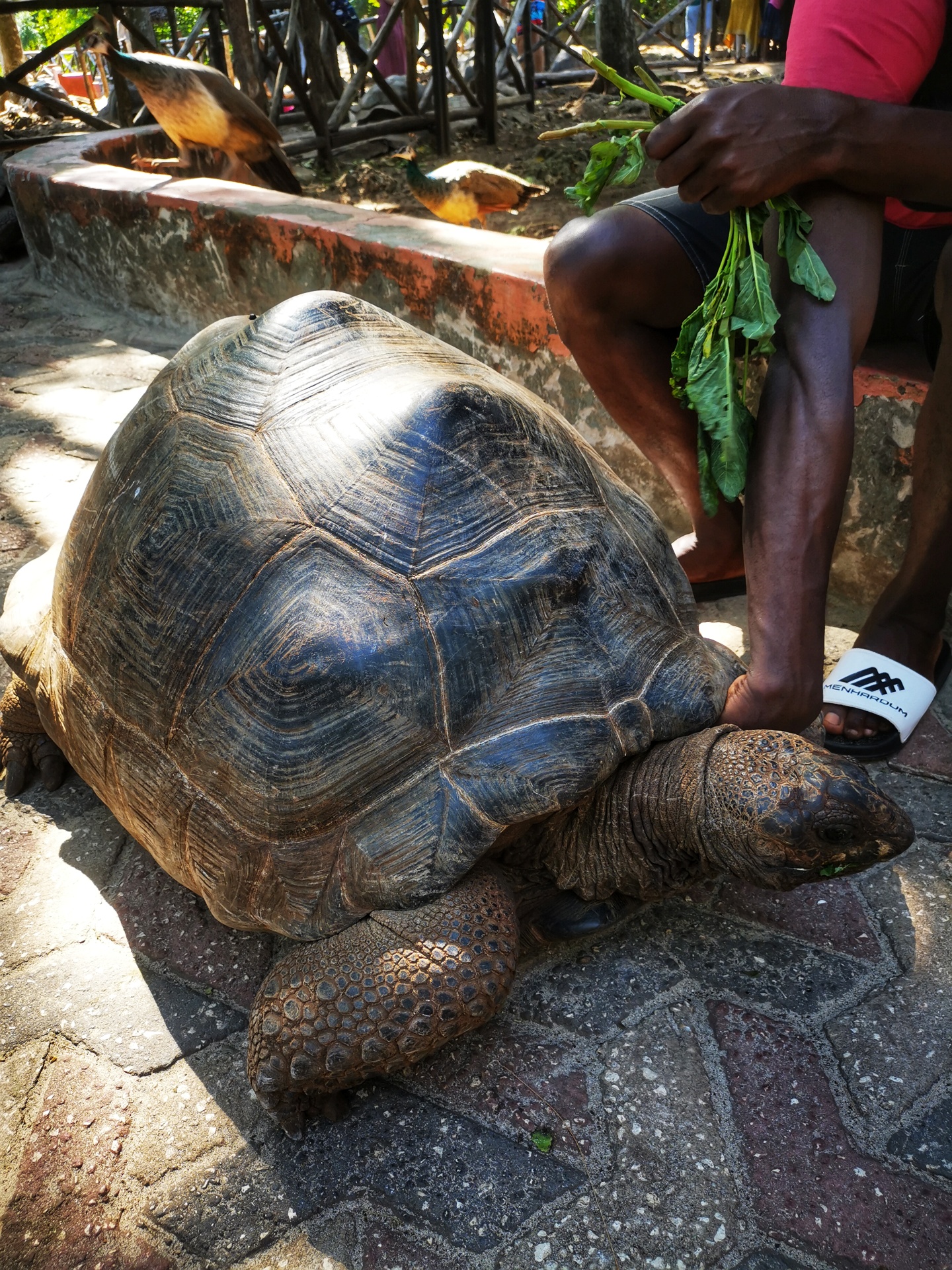 Der damalige Sultan bekam vier Riesenschildkröten von den Seychellen geschenkt, zwei männliche und zwei weibliche. Sie fühlten sich so wohl auf der Insel, dass sie sich dort vermehrten. Mittlerweile sind es über 100 Stück. Die Schildkröten sind teilweise bis zu 250kg schwer und können sehr alt werden. Noch heute lebt eine der vier ersten auf der Insel und ist mittlerweile 197 Jahre alt.