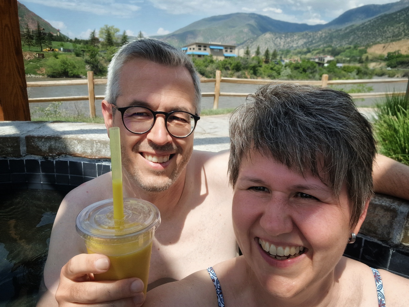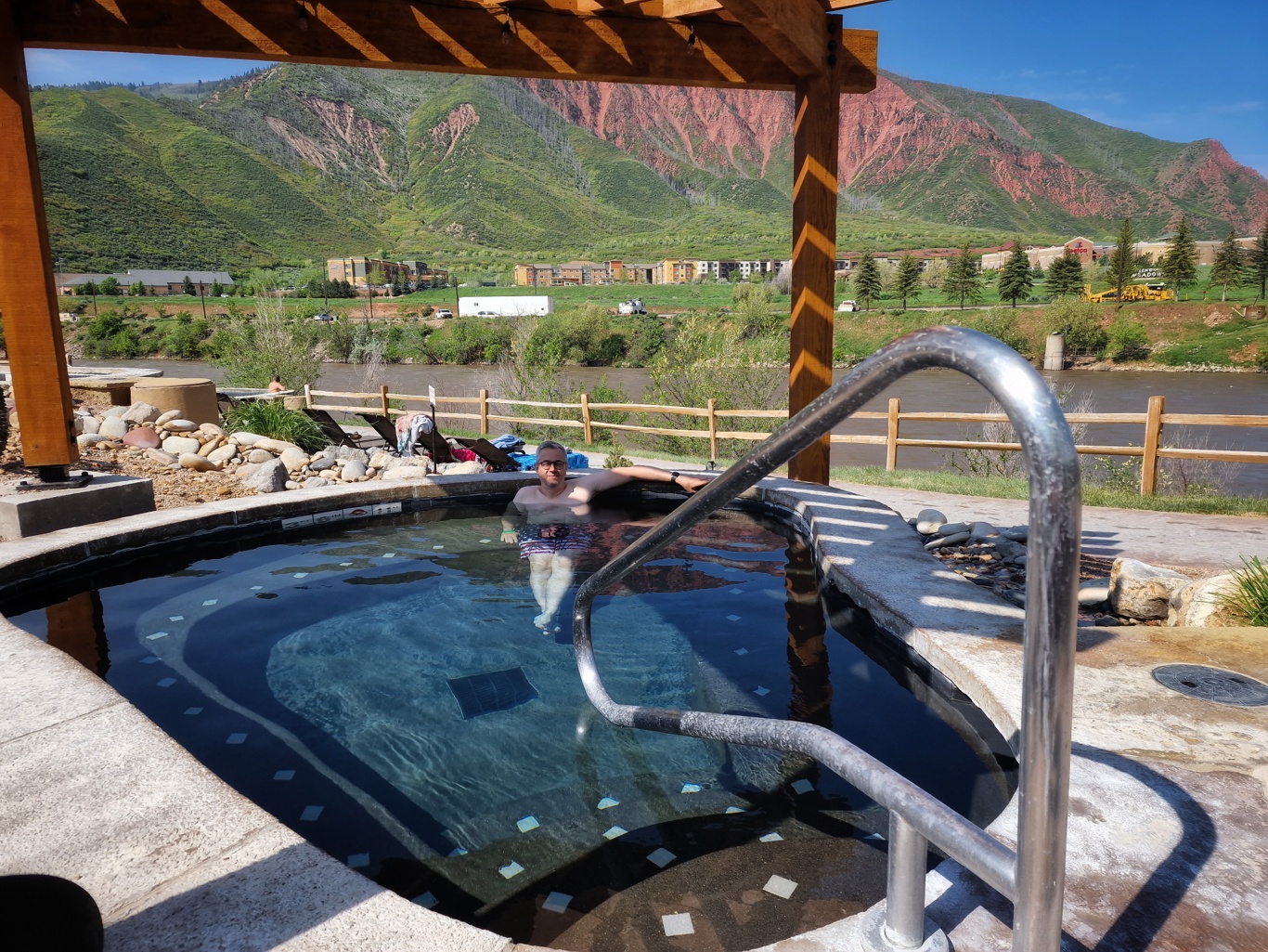 Glenwood Springs ist bekannt für seine vielen heißen Quellen. Deshalb gibt es im Ort und in der kompletten Umgebung extrem viele „Thermalbäder“. Wir waren in den „Iron Mountains Hot Springs“. Es handelt sich um eine große, recht neue Außenanlage von 2015 mit über 20 kleineren und größeren Steinpools. Jeder Pool wird mit heißem Quellwasser mit Wassertemperaturen zwischen 36 und 42 Grad gespeist. Wir kauften Tickets für einen Zeitraum von drei Stunden, in denen wir mit direktem Blick auf den Colorado River und den umliegenden grün bewachsenen Berghängen ein bisschen die Seele baumeln ließen. Ein kleiner Sonnenbrand war inklusive 😂🙈.