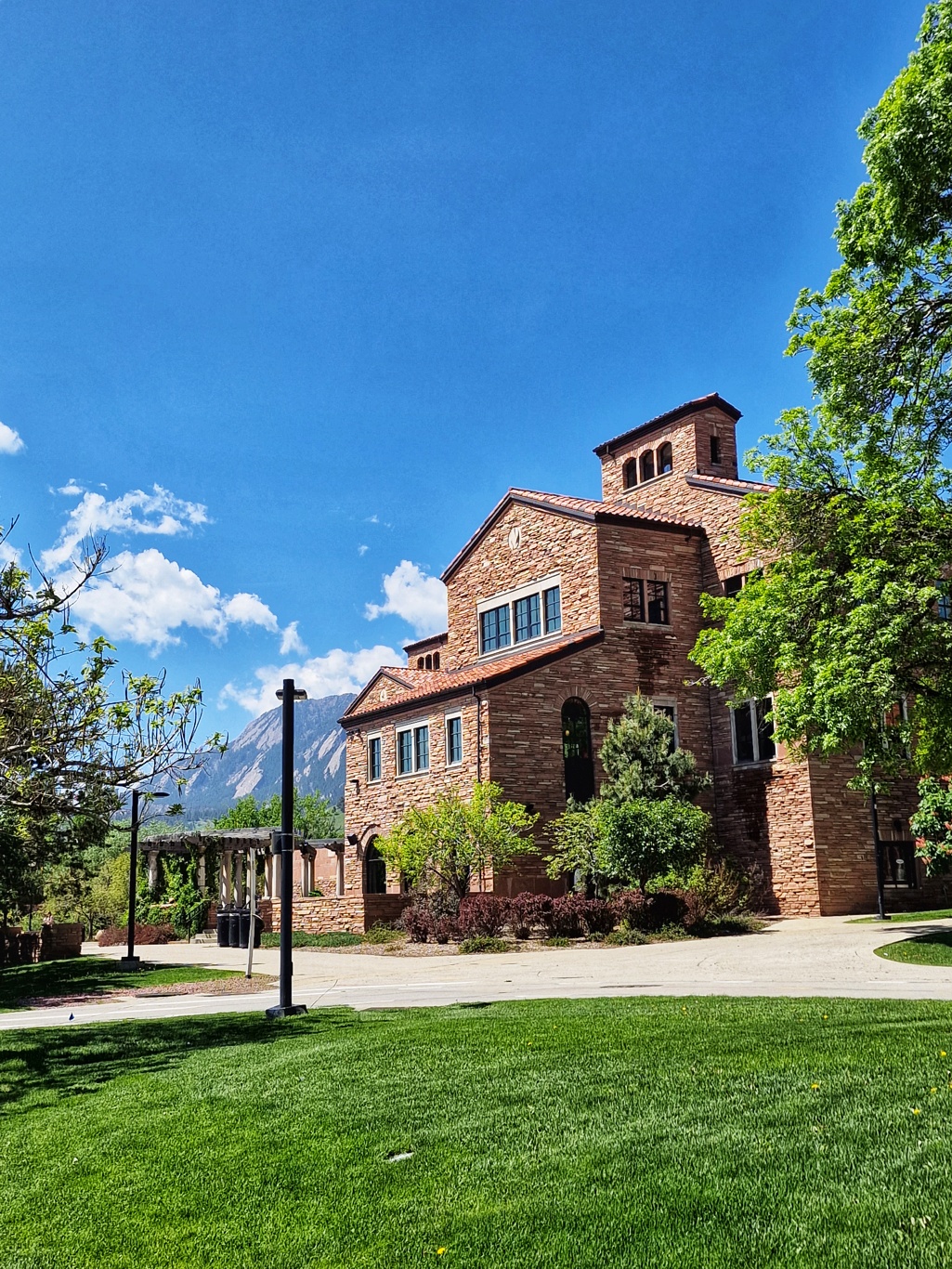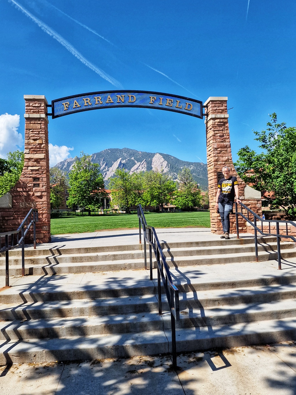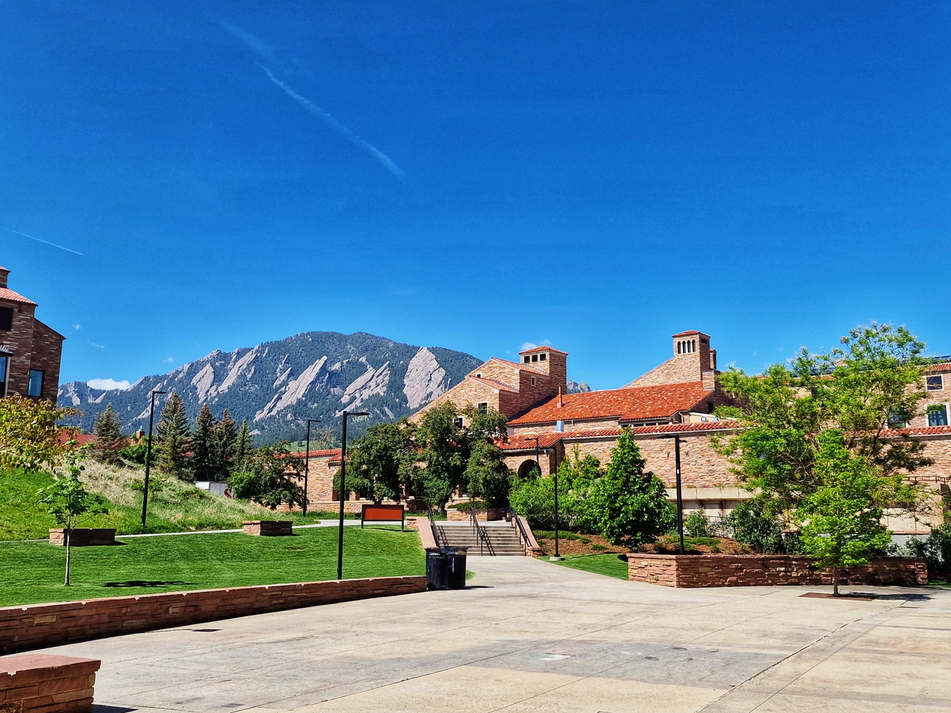 Die Universität von Colorado hat ihren Platz hier in Boulder. Natürlich ein Punkt, den wir unbedingt auf unserer Besichtigungsliste hatten. (Wenn ihr euch an unsere Ostküstentour erinnert, waren wir bereits an der Harvard University in Boston.) Bei strahlendem Sonnenschein und blauem Himmel über den Campus zu laufen, wo gerade ganz fleißig die Grünflächen gemäht wurden, war ein tolles Erlebnis. Wunderschöne Gebäude in denen die unterschiedlichsten Fakultäten untergebracht sind in einer traumhaft angelegten Parkanlage. Da macht es mit Sicherheit Freude zu studieren.