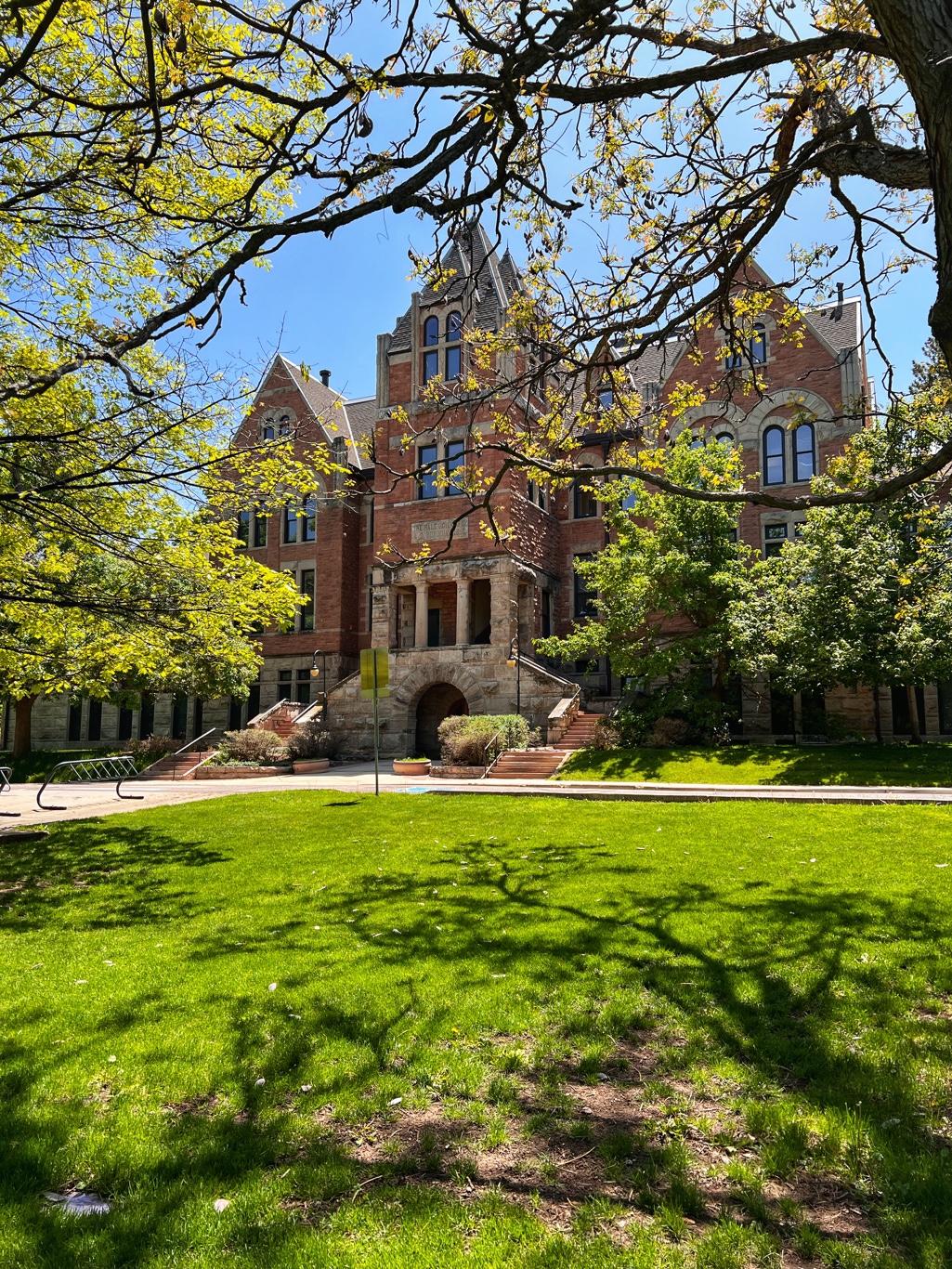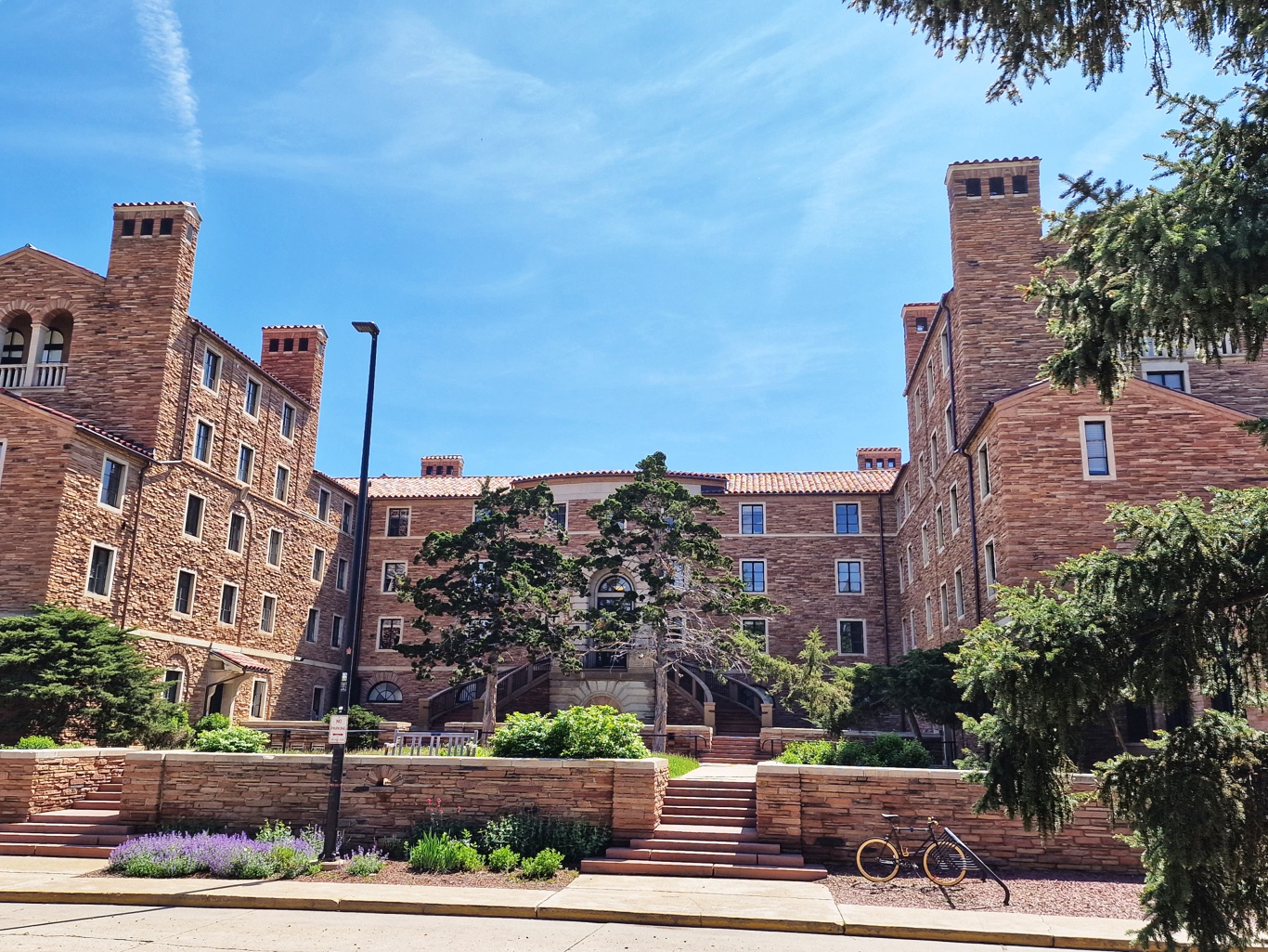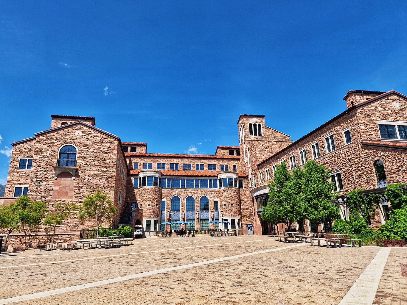 Die Universität von Colorado hat ihren Platz hier in Boulder. Natürlich ein Punkt, den wir unbedingt auf unserer Besichtigungsliste hatten. (Wenn ihr euch an unsere Ostküstentour erinnert, waren wir bereits an der Harvard University in Boston.) Bei strahlendem Sonnenschein und blauem Himmel über den Campus zu laufen, wo gerade ganz fleißig die Grünflächen gemäht wurden, war ein tolles Erlebnis. Wunderschöne Gebäude in denen die unterschiedlichsten Fakultäten untergebracht sind in einer traumhaft angelegten Parkanlage. Da macht es mit Sicherheit Freude zu studieren.