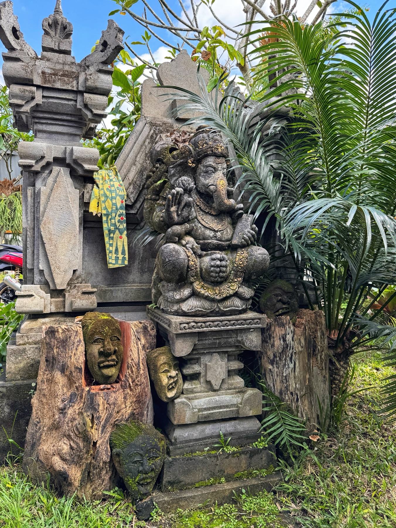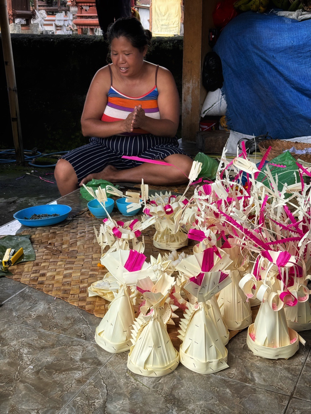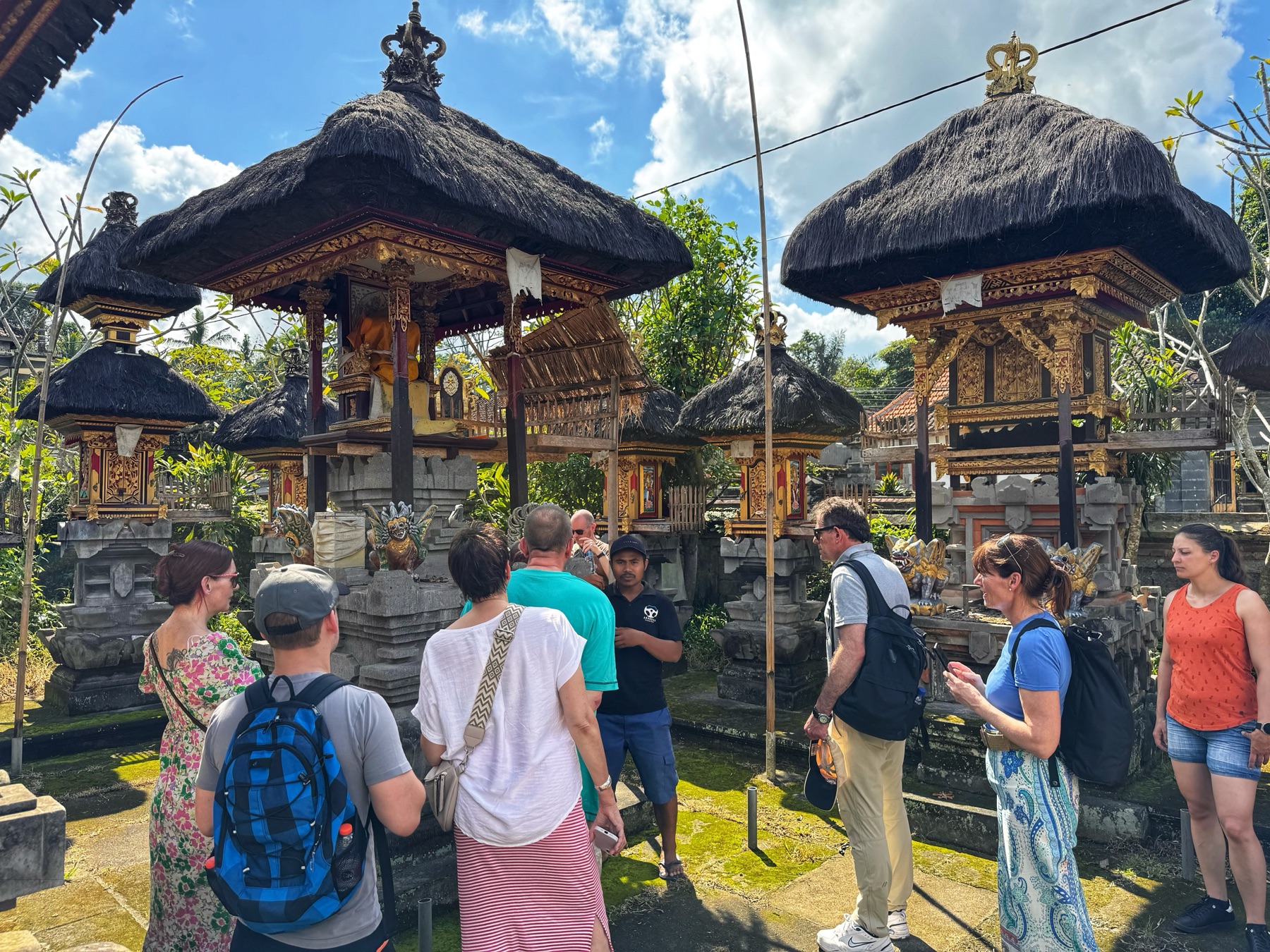 Besonders spannend waren seine Erklärungen zum Familientempel, denn jedes balinesische Haus hat einen eigenen Tempel. Auf Bali sind die Menschen Hindu, der Rest von Indonesien ist muslimisch. Hier hatten wir die Verbindung zu Gott.