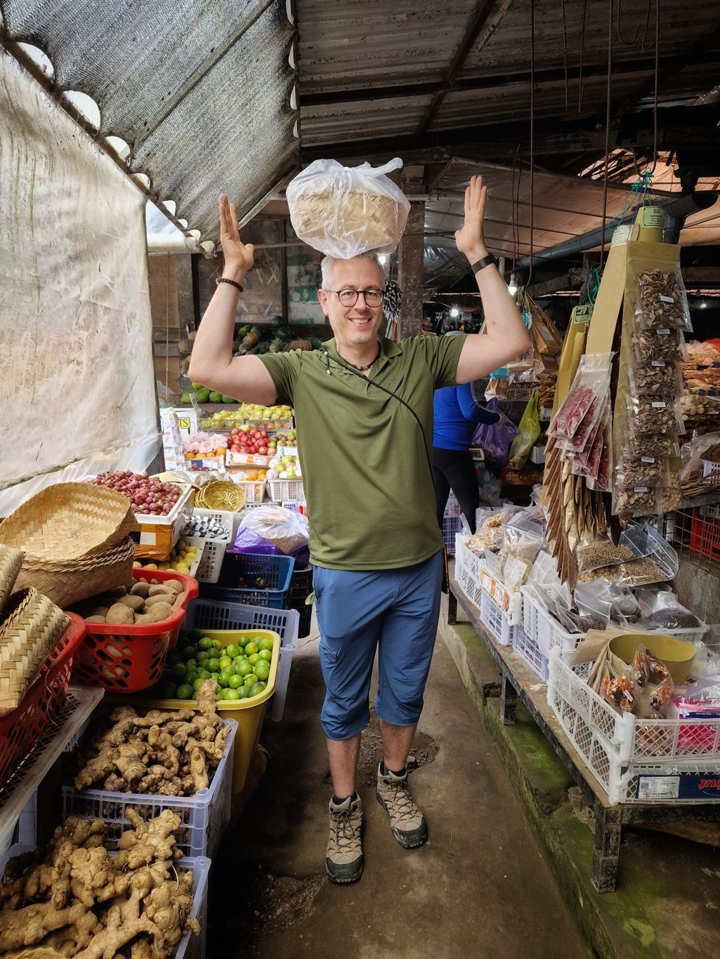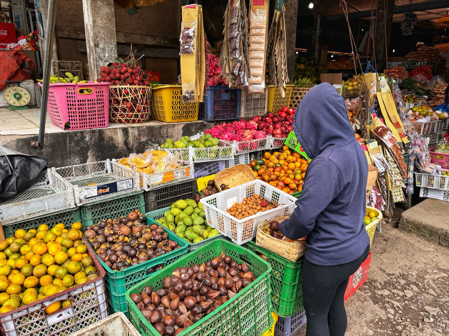 Da wir Ivan von unserer Begeisterung für die vielen verschiedenen Früchte hier auf der Insel erzählten, machte er mit uns einen kleinen Abstecher zu einem Lokalen Obst- und Gemüsemarkt, wo wir ganz viele verschiedene Dinge probieren durften. Jetzt haben wir einen vollen Obstkorb im Handgepäck. 😍