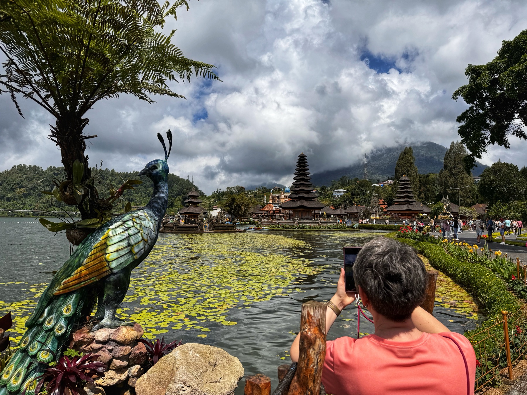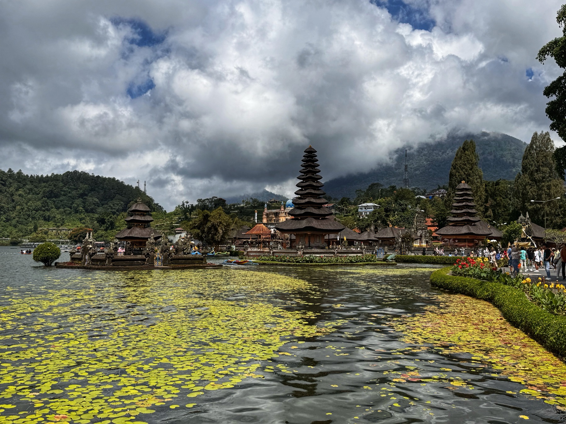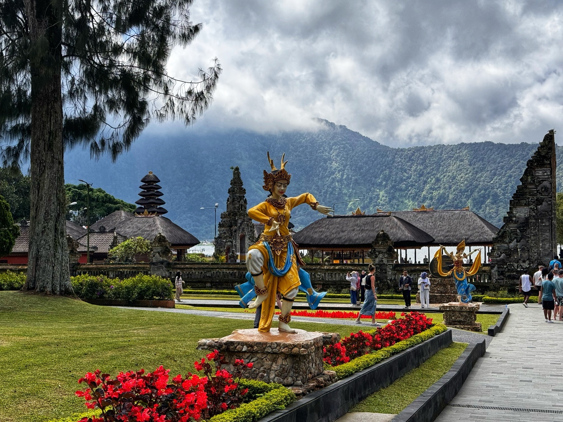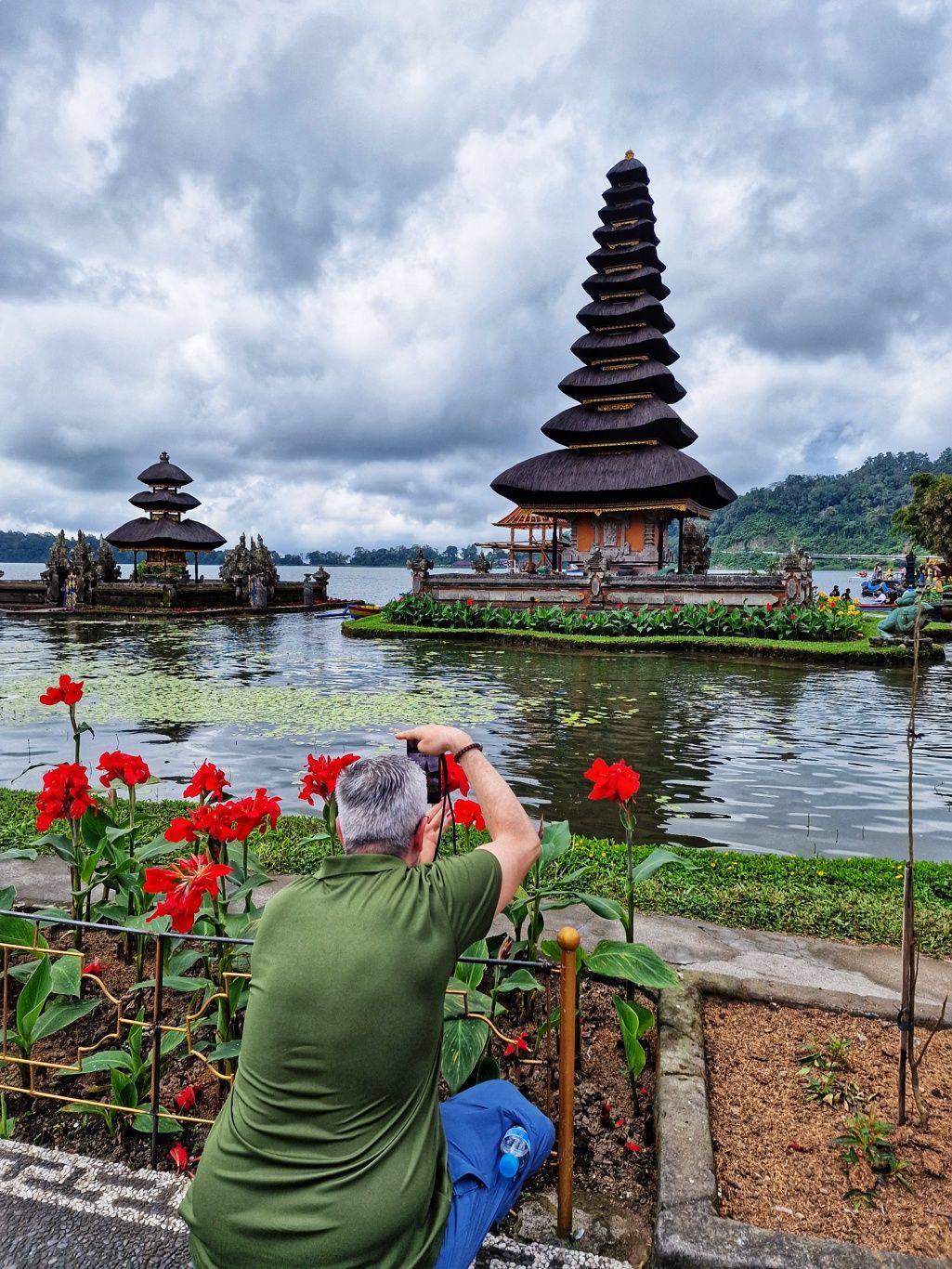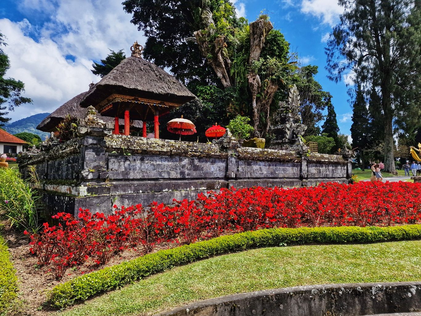 Weiter ging es in ein Bergdorf auf 1.200 m Höhe, das auch von den Balinesen gerne besucht wird. Hier befindet sich der Wassertempel Pura Ulun Danu Bratan am gleichnamigen Bratansee. Er liegt in einem traumhaft schönen Blumengarten und bot uns extrem viele Plätze für tolle Fotos.