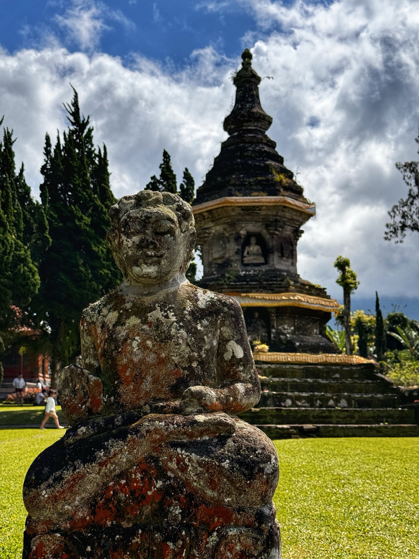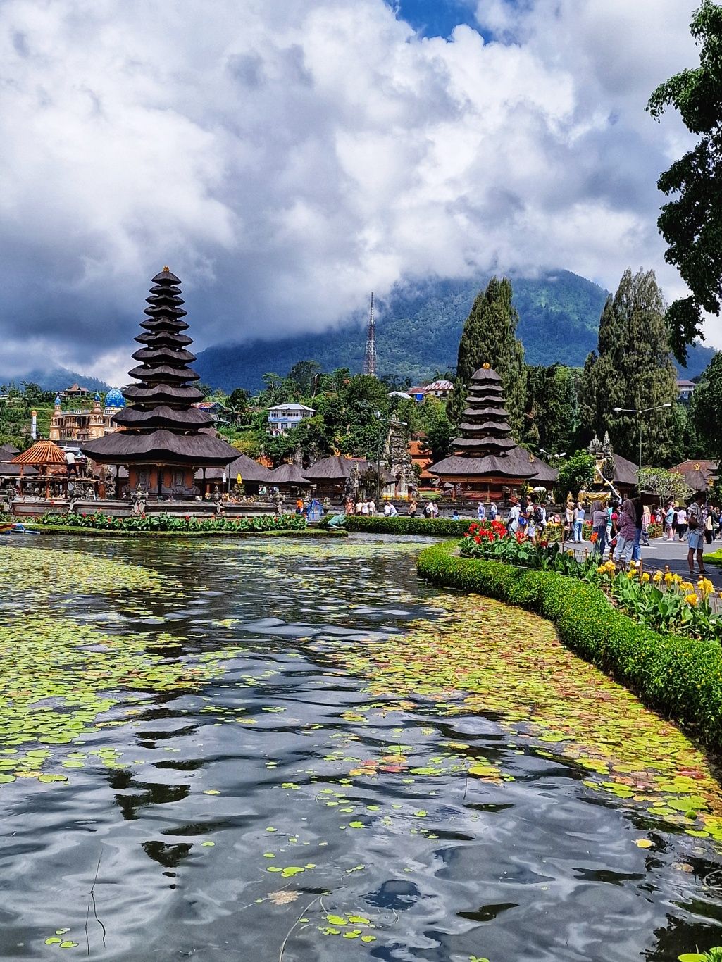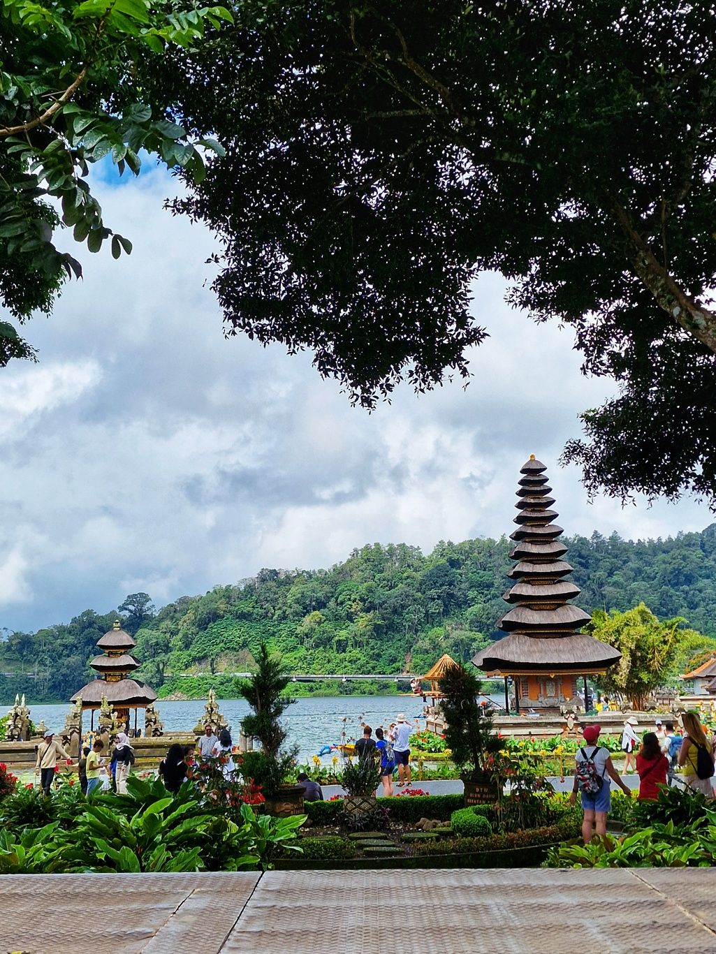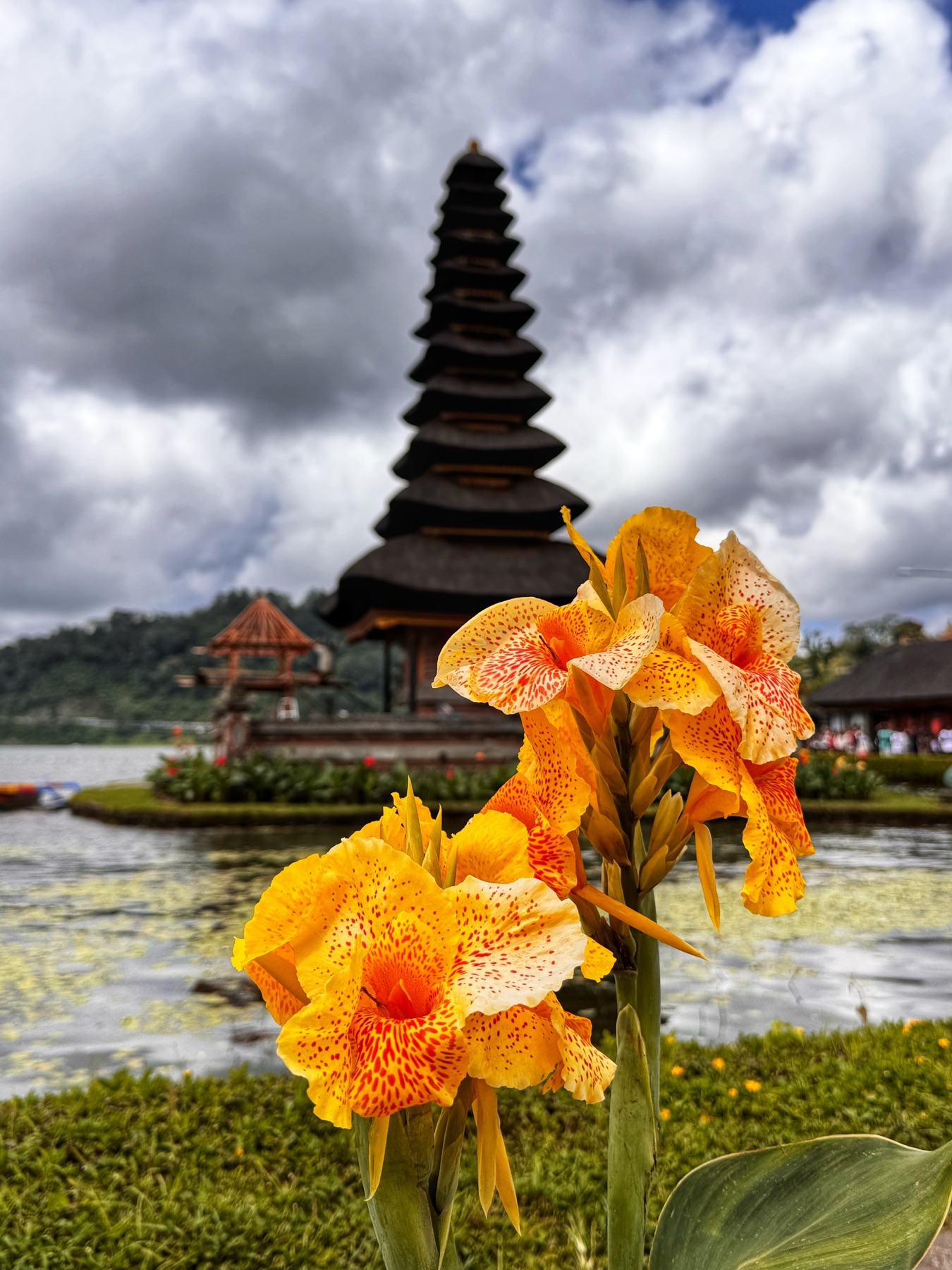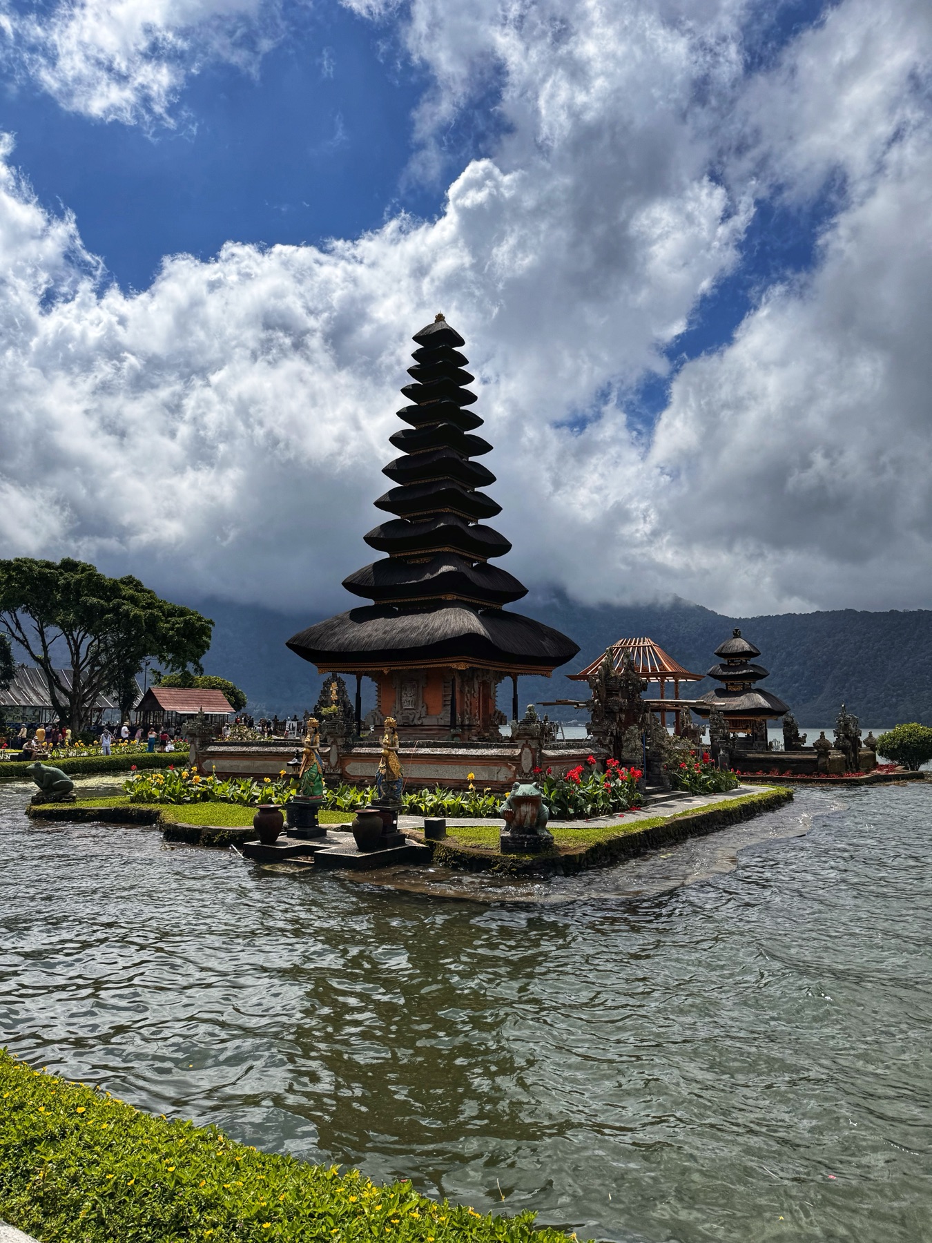 Weiter ging es in ein Bergdorf auf 1.200 m Höhe, das auch von den Balinesen gerne besucht wird. Hier befindet sich der Wassertempel Pura Ulun Danu Bratan am gleichnamigen Bratansee. Er liegt in einem traumhaft schönen Blumengarten und bot uns extrem viele Plätze für tolle Fotos.