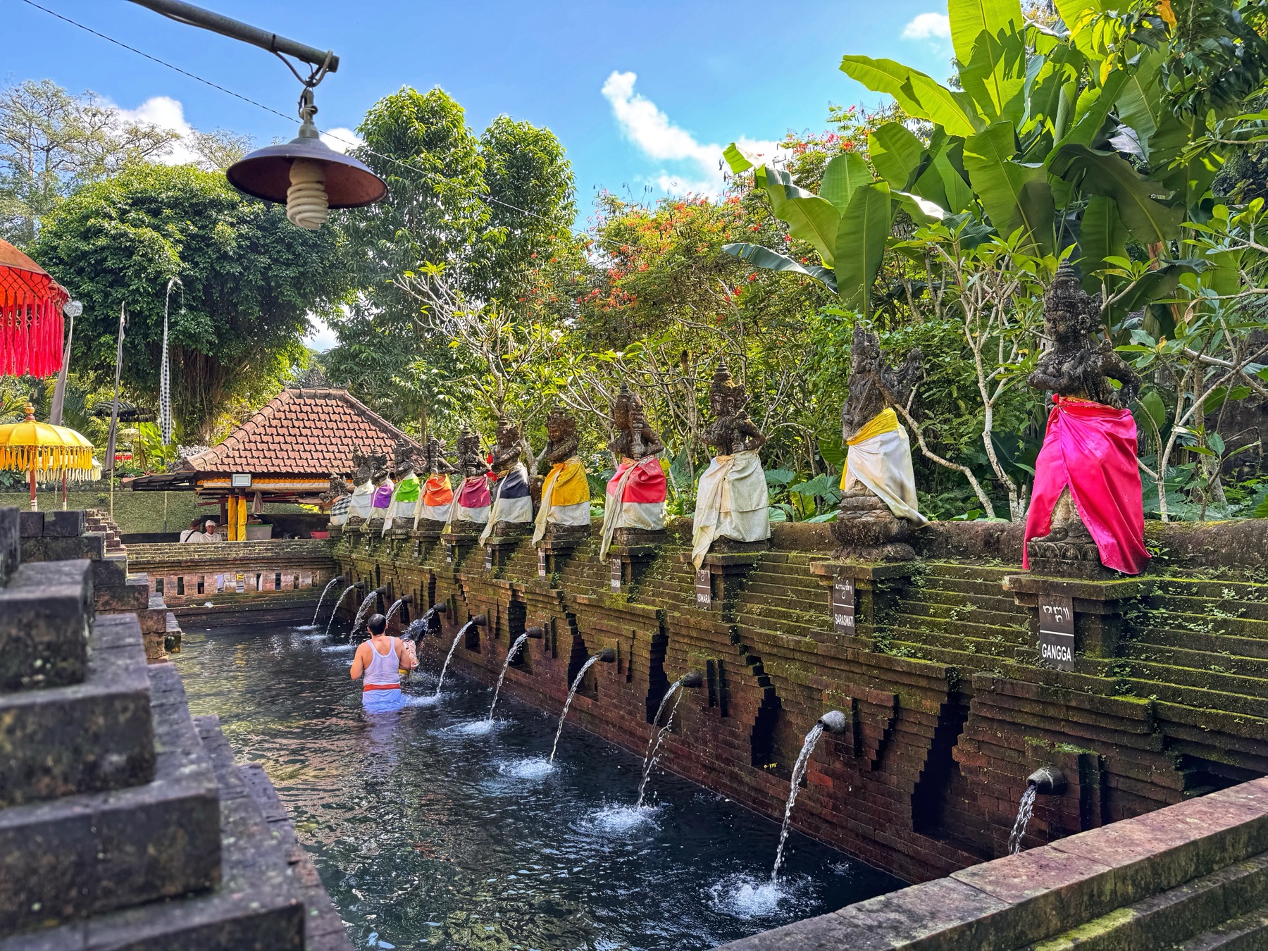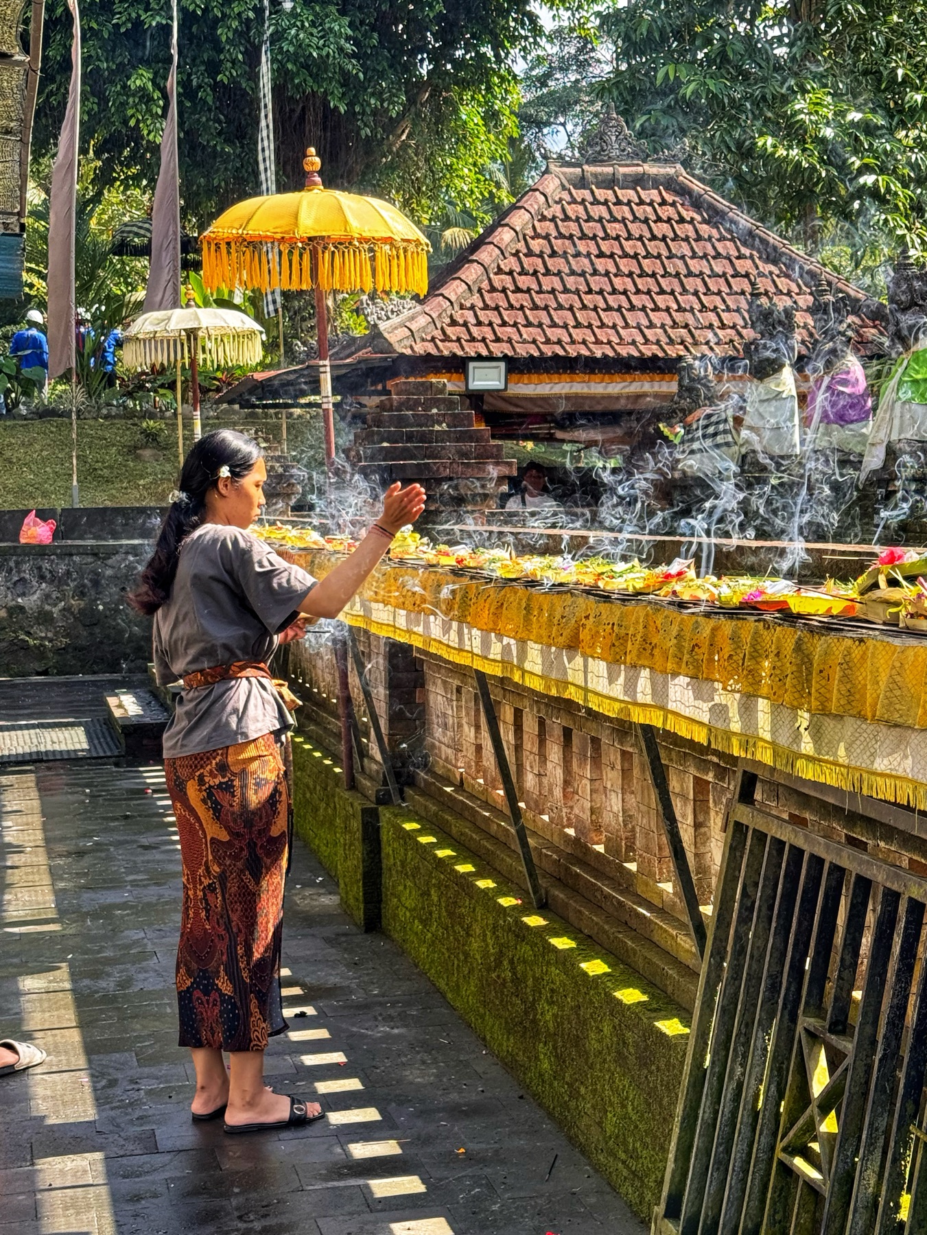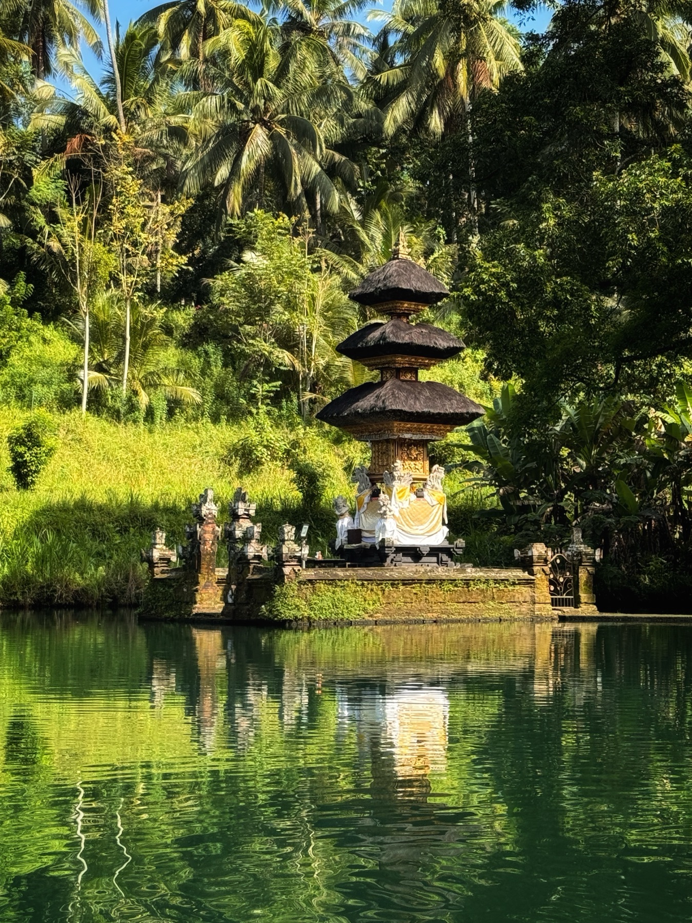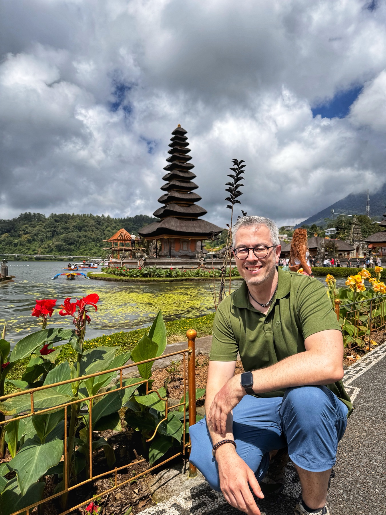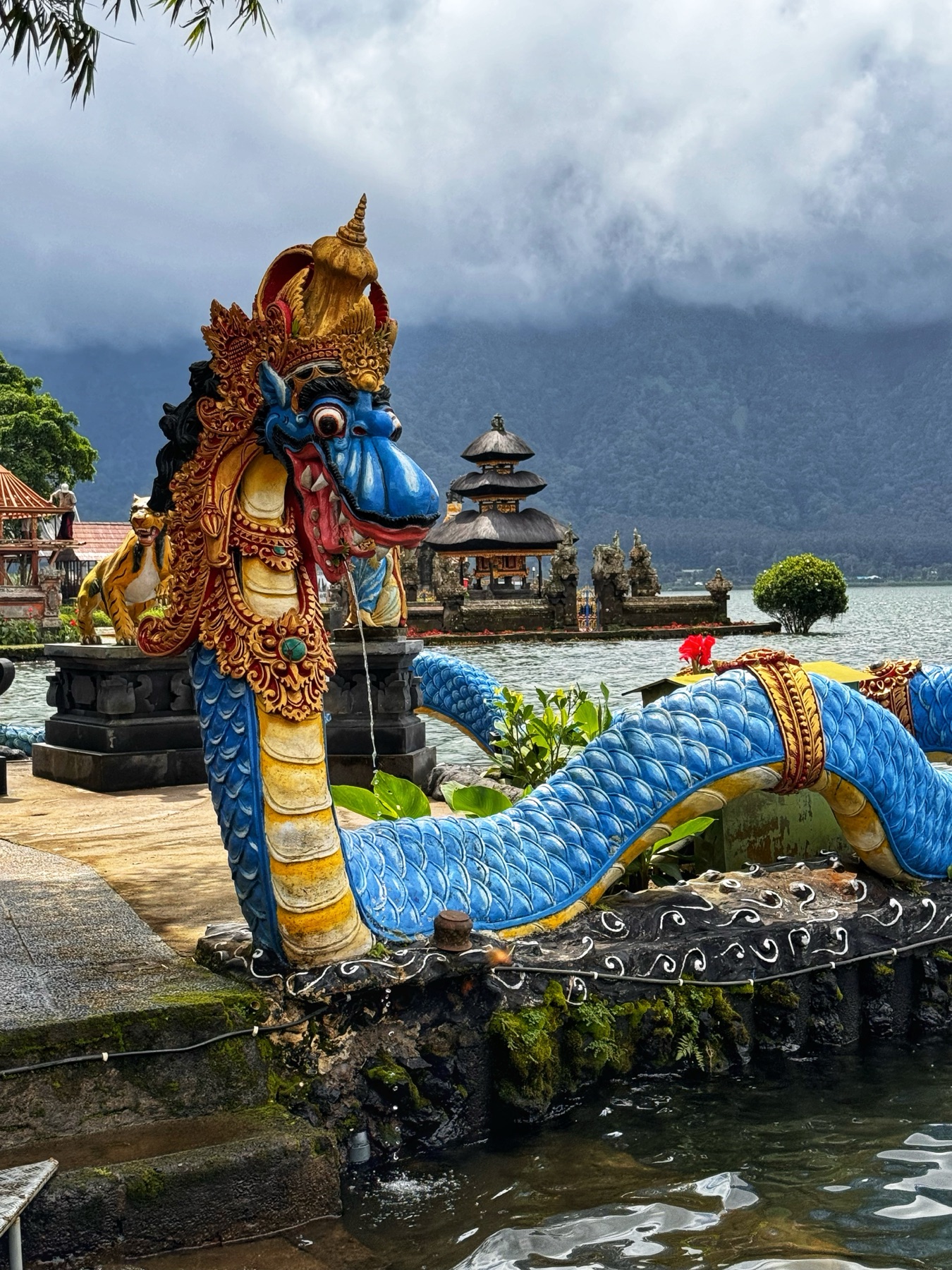 Weiter ging es in ein Bergdorf auf 1.200 m Höhe, das auch von den Balinesen gerne besucht wird. Hier befindet sich der Wassertempel Pura Ulun Danu Bratan am gleichnamigen Bratansee. Er liegt in einem traumhaft schönen Blumengarten und bot uns extrem viele Plätze für tolle Fotos.
