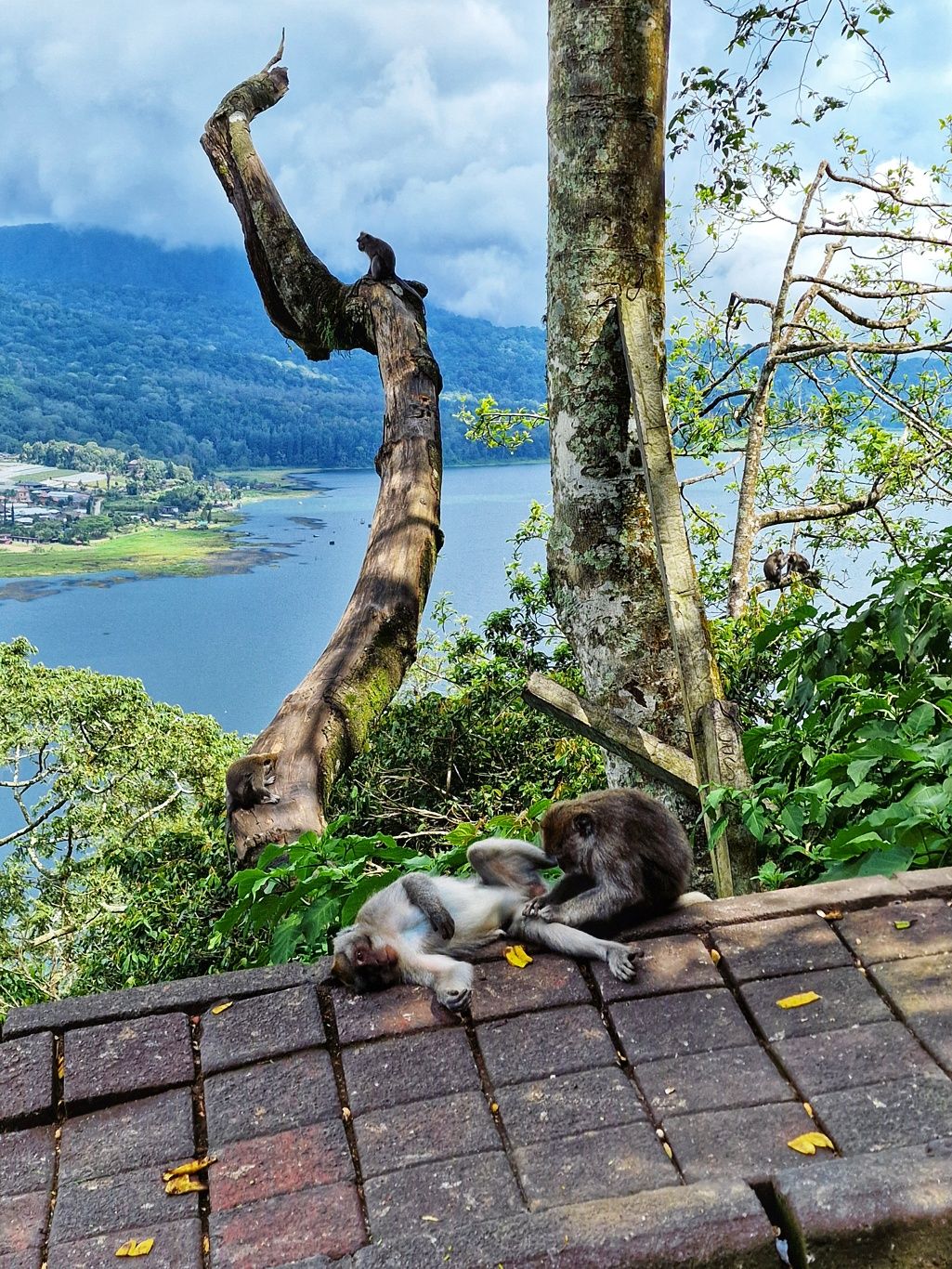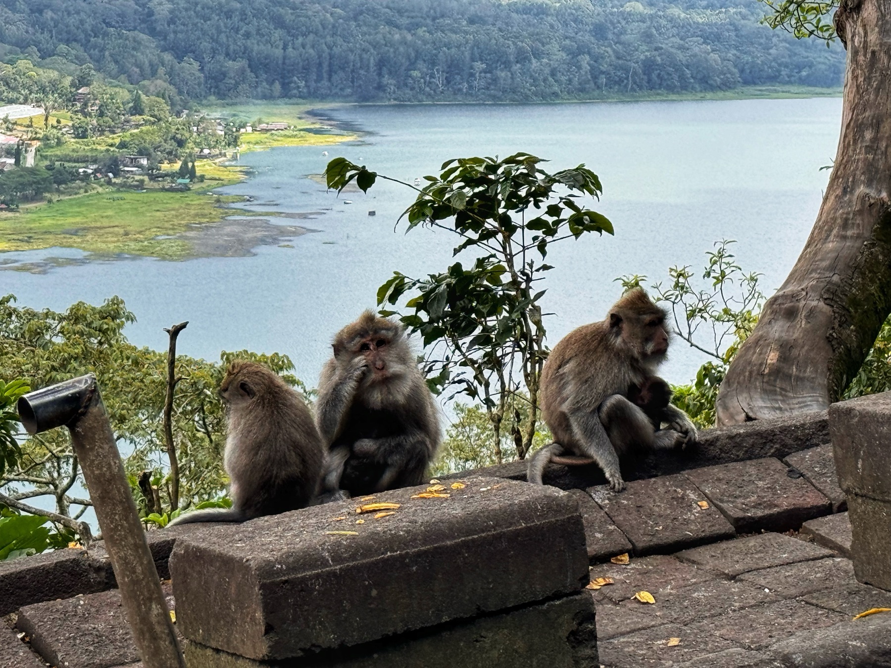 Von dort aus fuhren wir weiter zu einem Aussichtspunkt, wo wir die Zwillingsseen Buyan und Tamblingan bestaunen konnten. An der Straße ein paar neugierige Affen durften natürlich auch nicht fehlen.