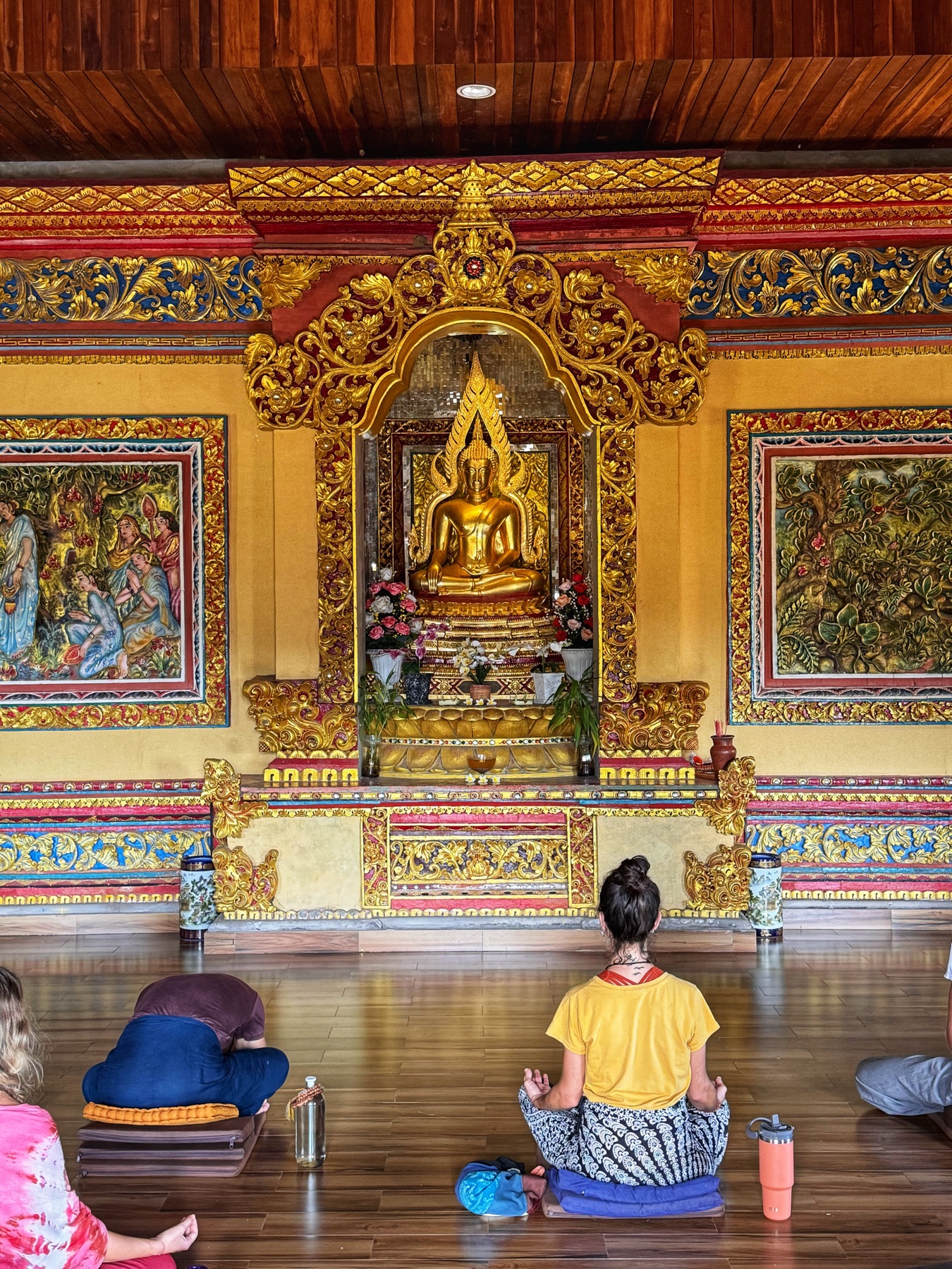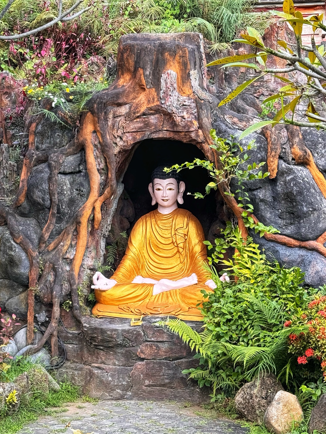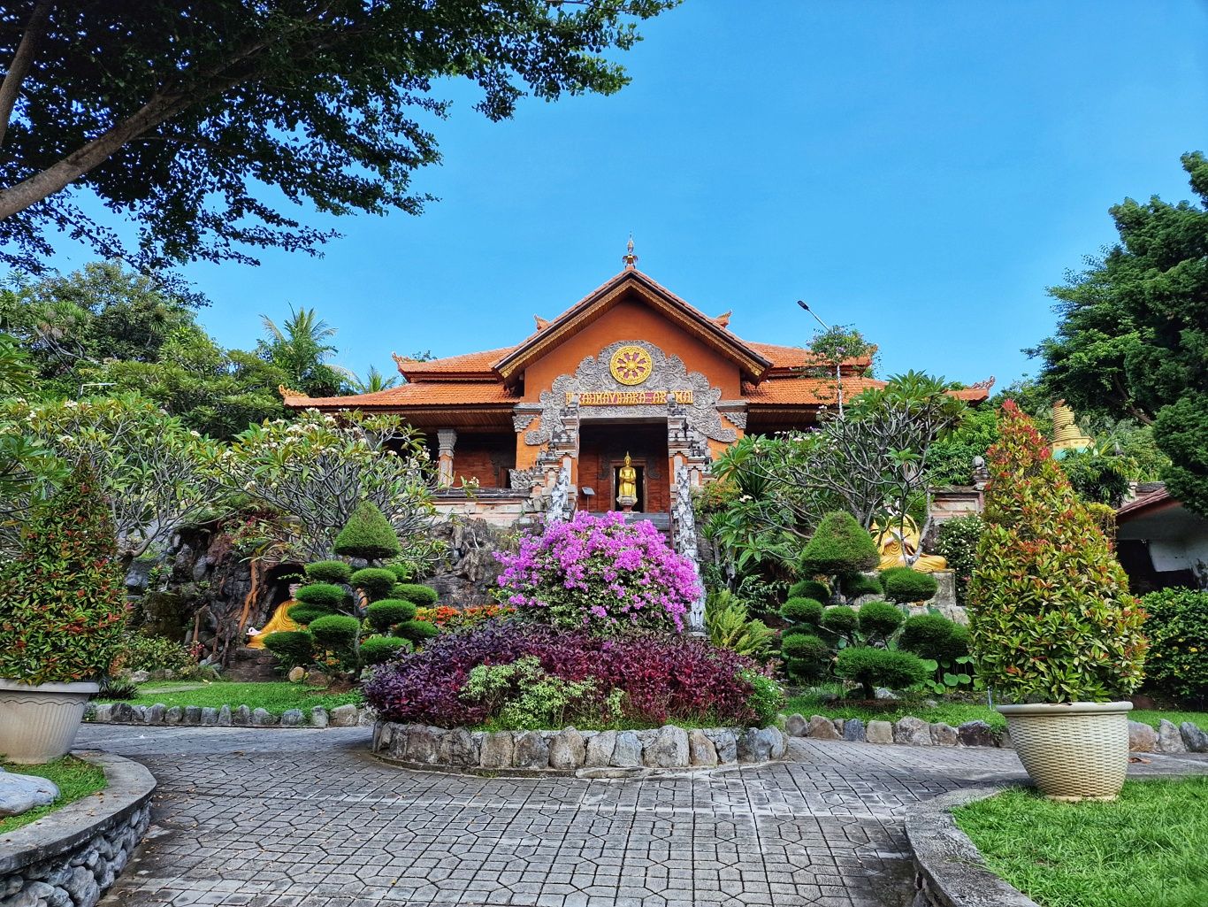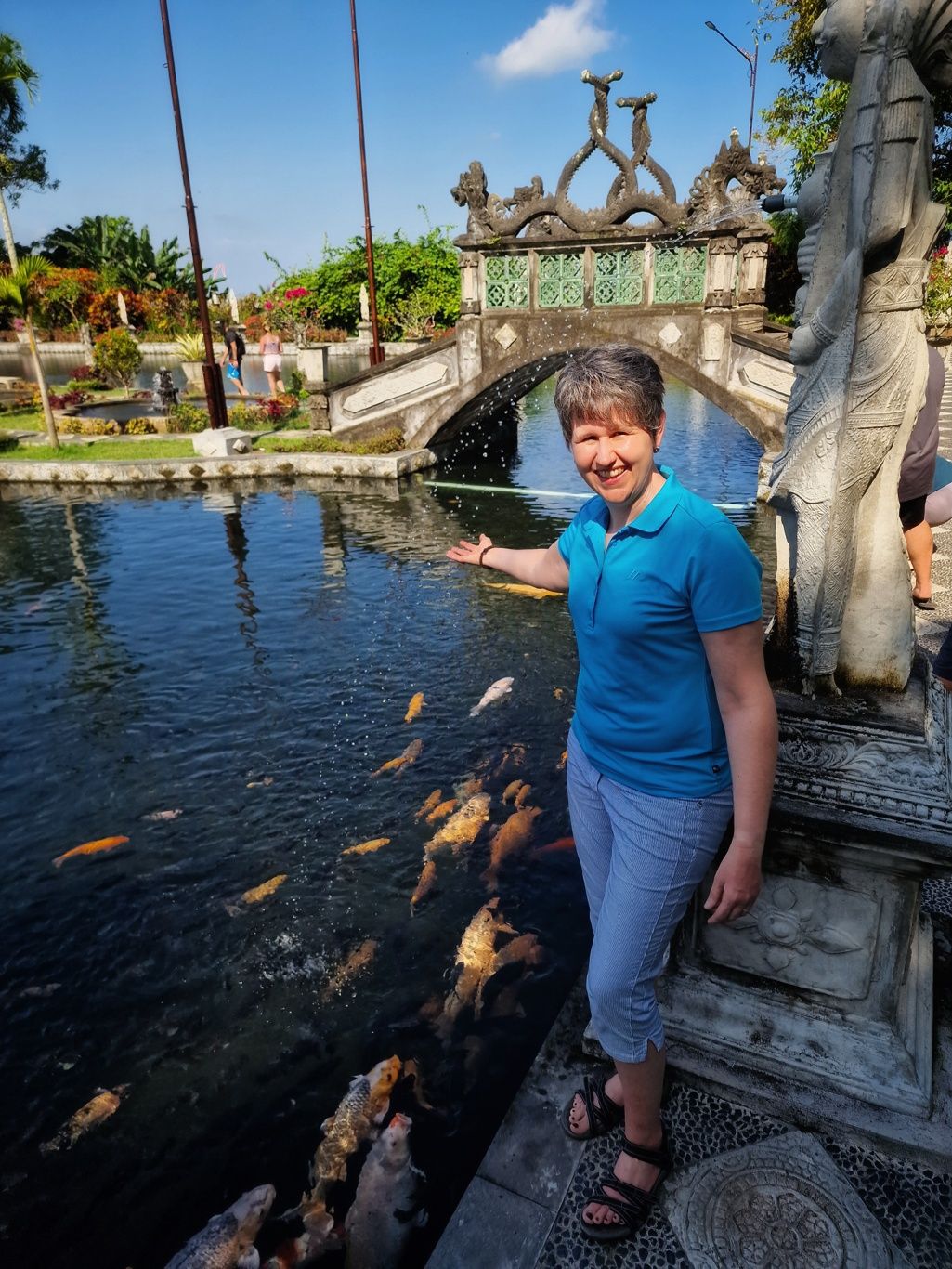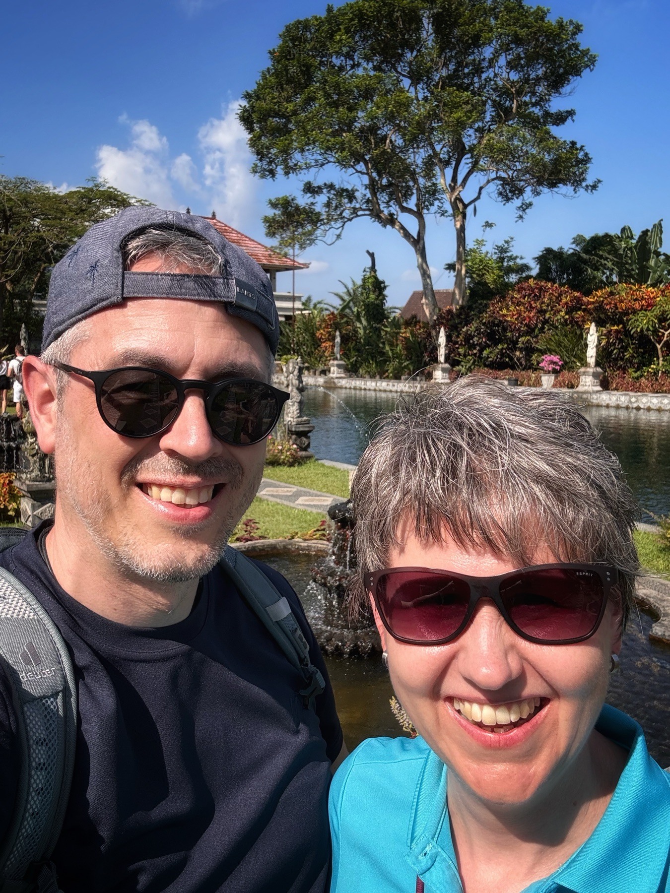 So hatte Ivan wieder eine fantastische Lösung. Er fuhr uns zu einem wunderschönen, buddhistischen Tempel, wo wir fast ganz alleine waren. Ein traumhaftes Fleckchen Erde mit tollen buddhistischen Statuen kombiniert mit hinduistischen Elementen, eingebettet in einen wunderschönen Blumengarten. Wir waren absolut begeistert und zum Schluss bekamen wir auch noch unser Foto am Himmelstor, denn die Tempel in Bali haben in der Regel alle ein solches Tor. Wenn wir es euch nicht verraten hätten, wäre es niemandem aufgefallen, oder?😂