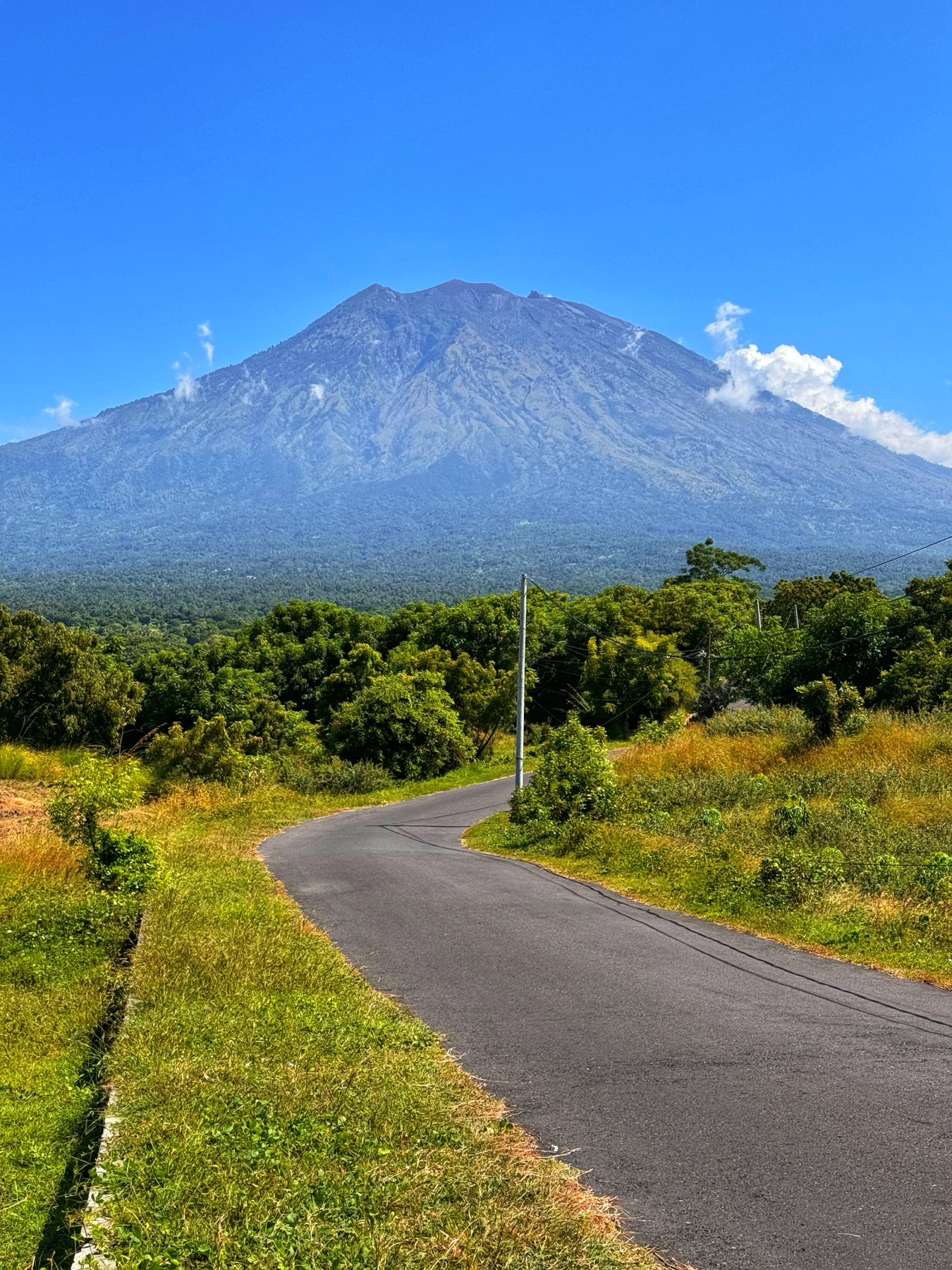 Unsere Strecke führte uns eine ganze Zeit entlang der Küste mit schönen Ausblicken auf das Meer. Auf der anderen Seite konnten wir immer wieder eine Sicht auf den höchsten Berg der Insel ,Mount Agun“ bekommen.