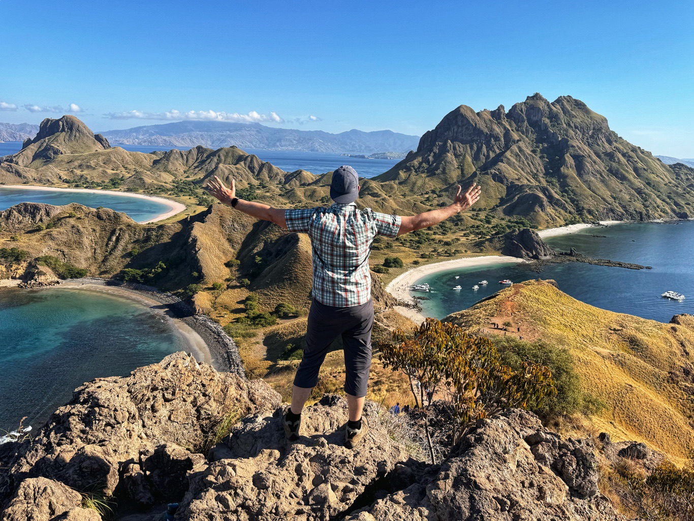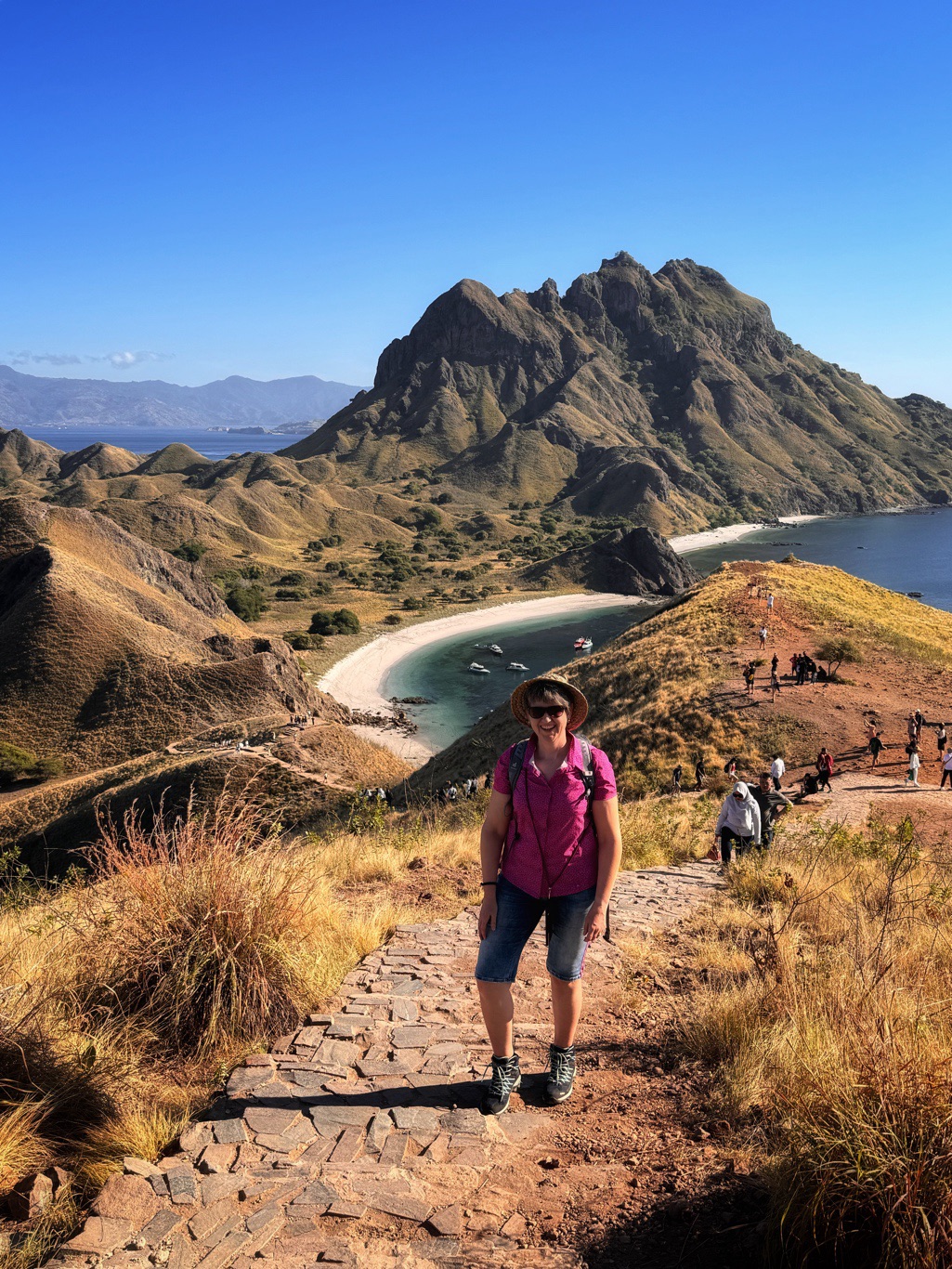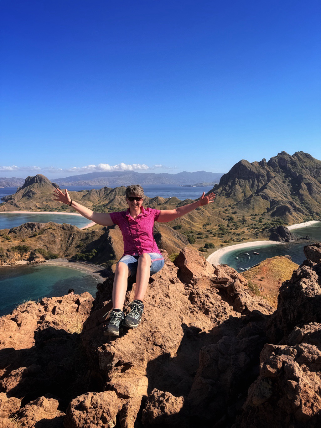 An unserem ersten Stopp kletterten wir auf einen Hügel, von wo aus man drei Strände mit verschiedenfarbigem Sand (weiß, schwarz und pink) gleichzeitig sehen kann. Dafür mussten wir über 800 Stufen hinaufsteigen. Nach unserer Vulkantour natürlich gar kein Problem mehr. 😜 Die Ausblicke unterwegs und von ganz oben waren atemberaubend.
