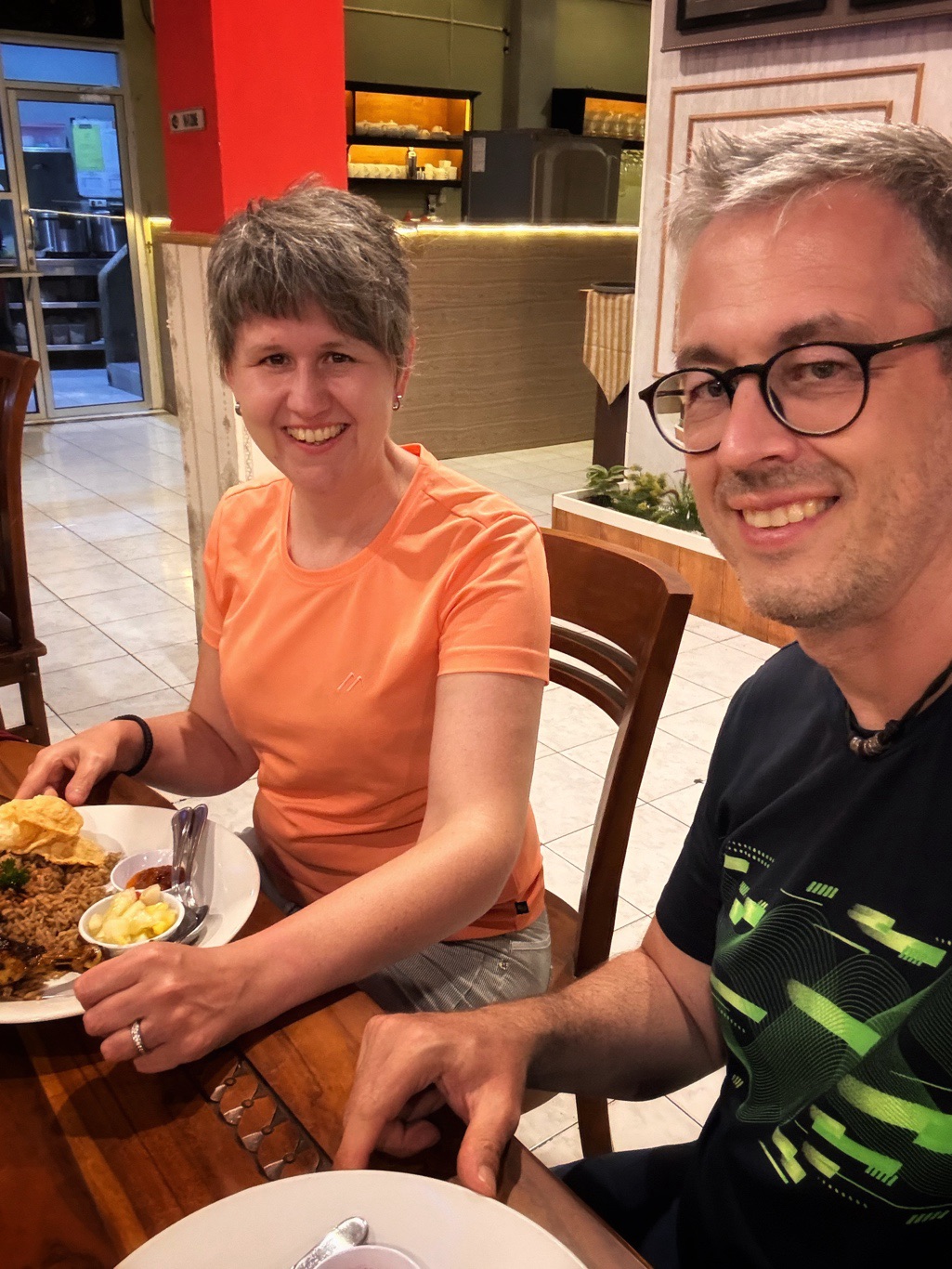 Ankunft auf Lombok 21Uhr, und es ist natürlich schon stockdunkel. Ein wenig ein verlorener Tag heute, aber nicht zu ändern. Unser aktueller Fahrer Tanu ist super freundlich und extrem hilfsbereit. Da unsere einzige Mahlzeit heute das Frühstück war, und wir mit Sicherheit davon ausgehen konnten, dass wir bis wir im Hotel ankommen nichts mehr bekommen, versuchte er noch etwas Essbares für uns in einem Restaurant aufzutreiben. Bei dem dritten wurden wir dann tatsächlich fündig und bekamen noch ein gutes Abendessen. Doch noch ein guter Tag!😂