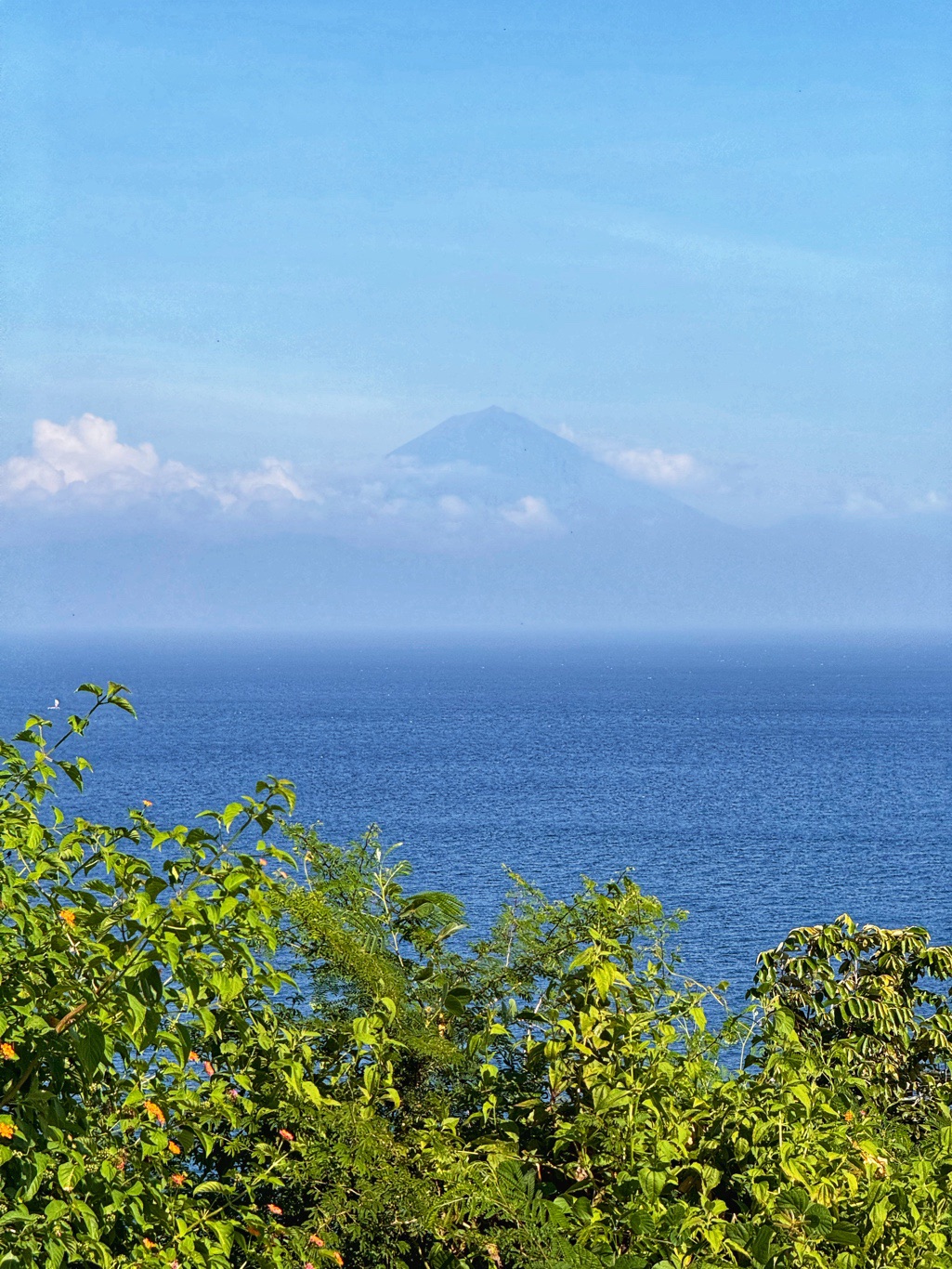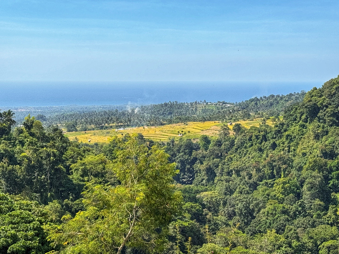 Er brachte uns zuerst zu einem schönen Aussichtspunkt auf einem Hügel, von wo aus wir aufs Meer, auf die drei vorgelagerten Gili Inseln und sogar bis nach Bali auf den höchsten Berg Mount Agun schauen konnten.
