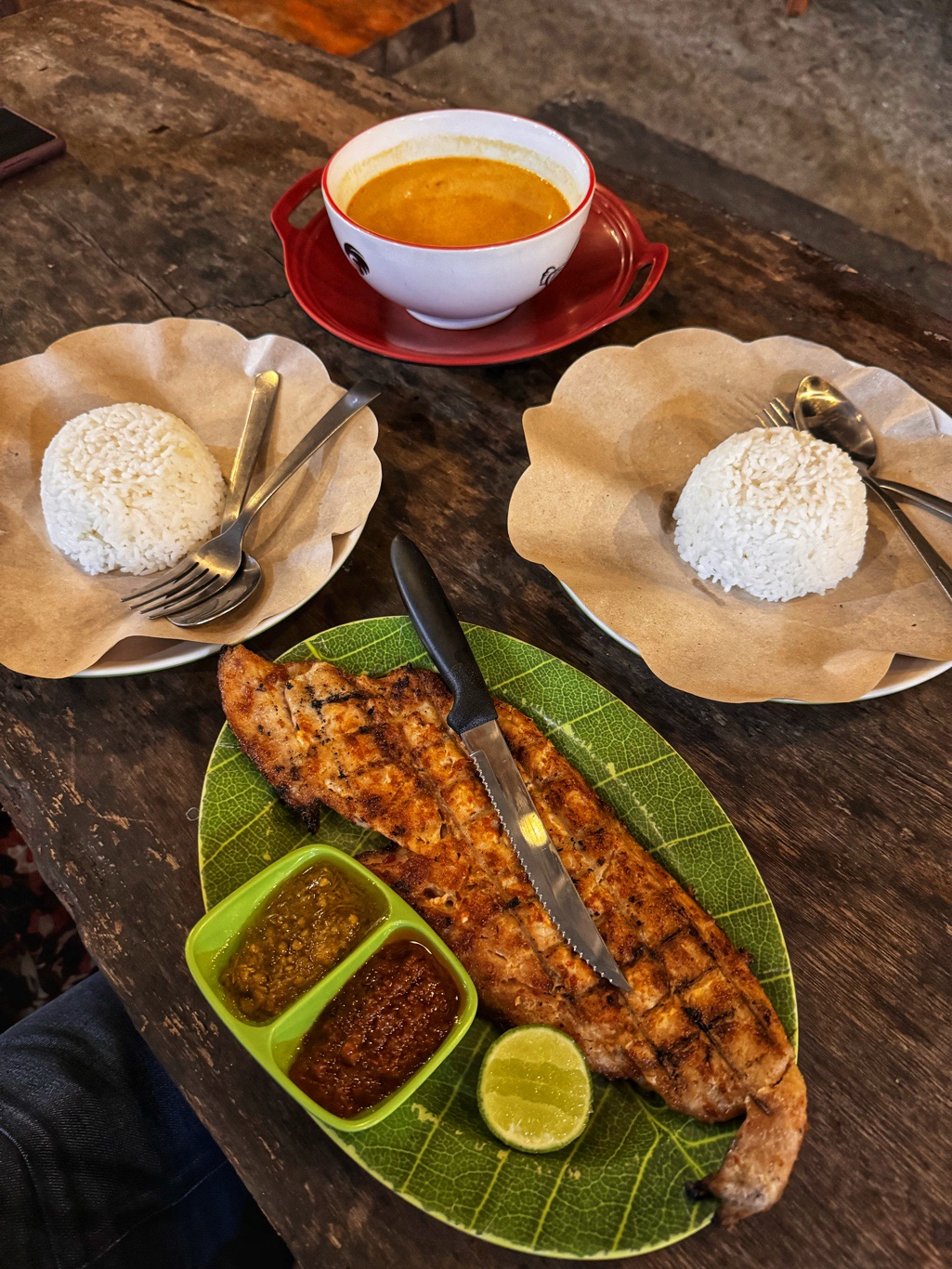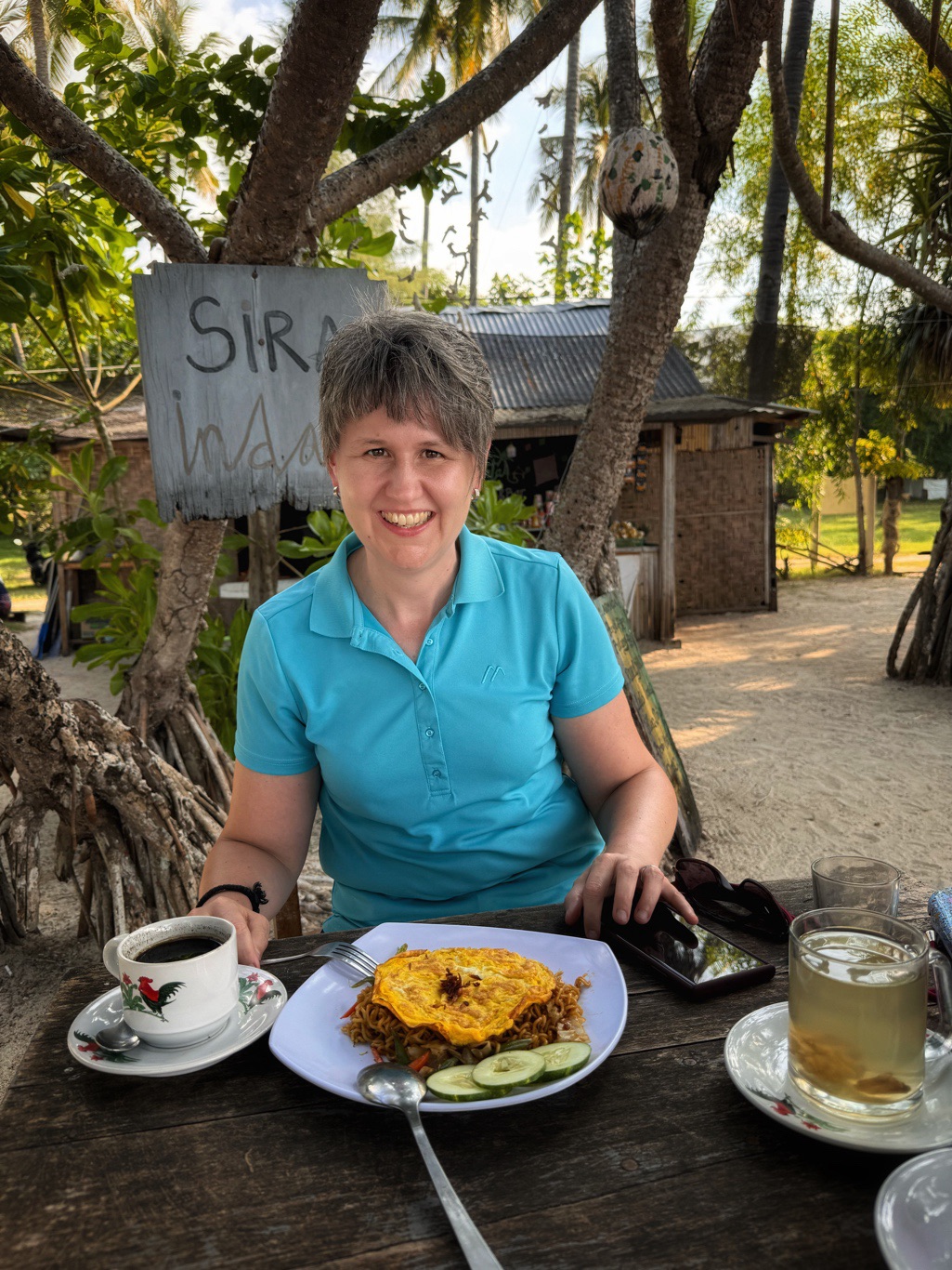 Nach einer kurzen Pause ging es weiter. Tanu hatte die super Idee uns zu einem einsamen Strand zu bringen. Ein wunderschöner Platz, um zu entspannen und an einer kleinen Strandbar super leckere Nudeln und Lombokkaffee zu genießen.