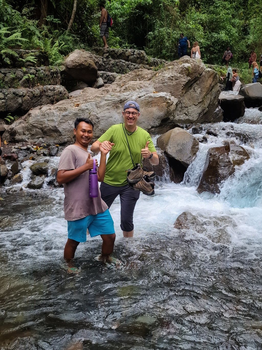 Von dort aus fuhren wir weiter bis zum Startpunkt für eine kleine Wanderung zu zwei wunderschönen Wasserfällen. Ein lokaler Führer begleitete uns dorthin. Er passte sehr gut auf uns auf, denn ein wenig Abenteuer ist ja mittlerweile bei unseren Ausflügen immer dabei.😜