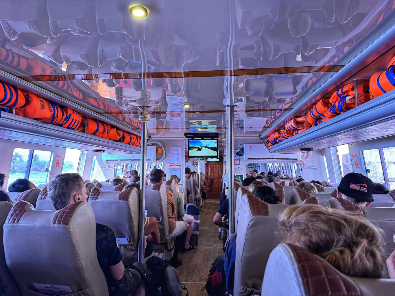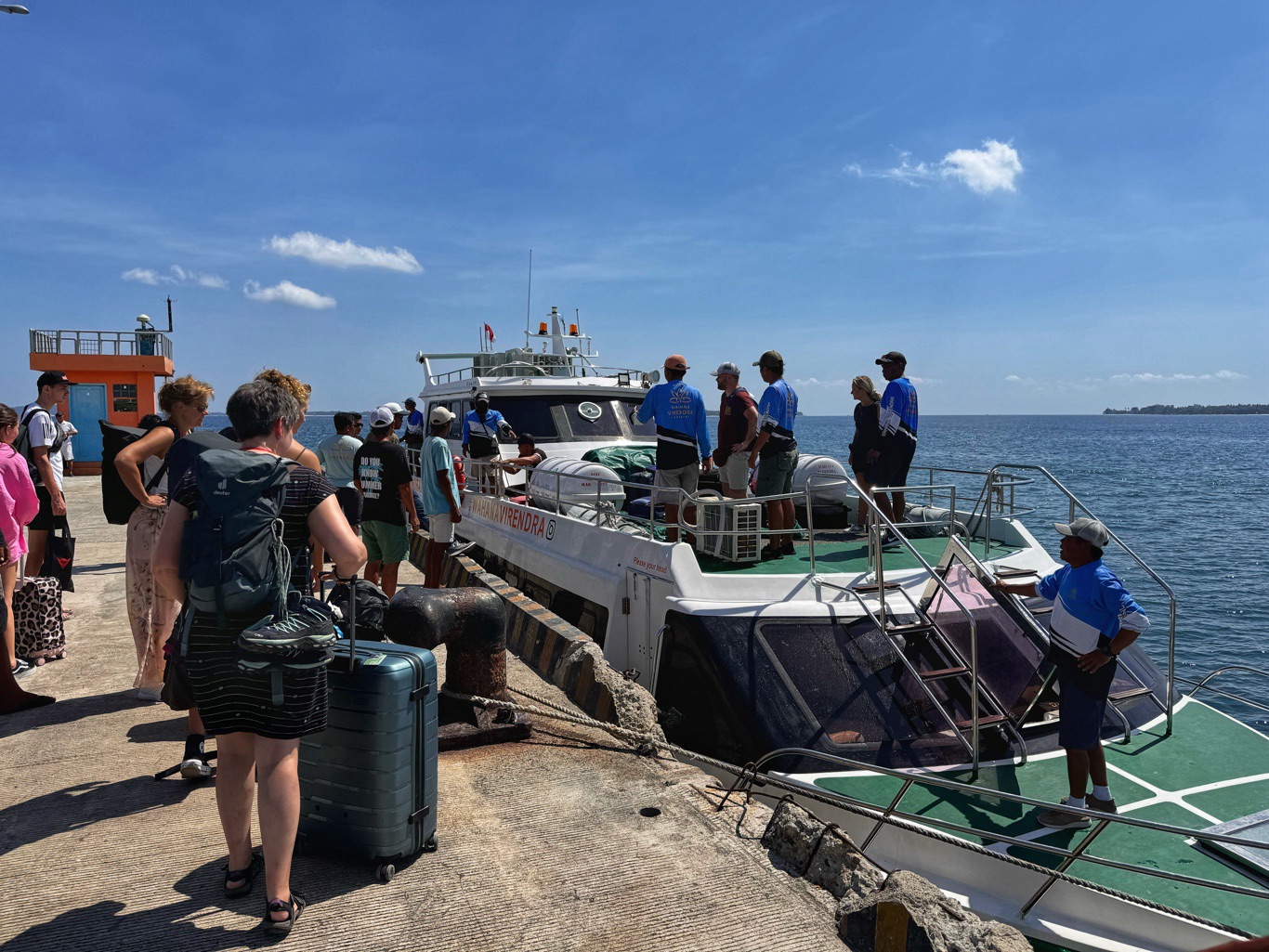 Tanu holte uns um 10Uhr am Hotel ab und brachte uns zum Hafen von Lombok, wo wir uns mit dem Schnellboot auf den Weg nach Bali machten. Sitze ähnlich wie in einem Flugzeug und mit ordentlich Geschwindigkeit flogen wir fast über das Wasser. Das Meer war doch ziemlich unruhig, so dass es uns manchmal ein bisschen holprig vorkam, aber Gott sei Dank sind wir ja beide seefest. In mehr oder weniger genau 90 Minuten erreichten wir den Hafen Palangbai auf Bali. Es war extrem voll am Pier, aber wir fanden Ivan sehr schnell und waren sehr froh, ihn wiederzusehen.