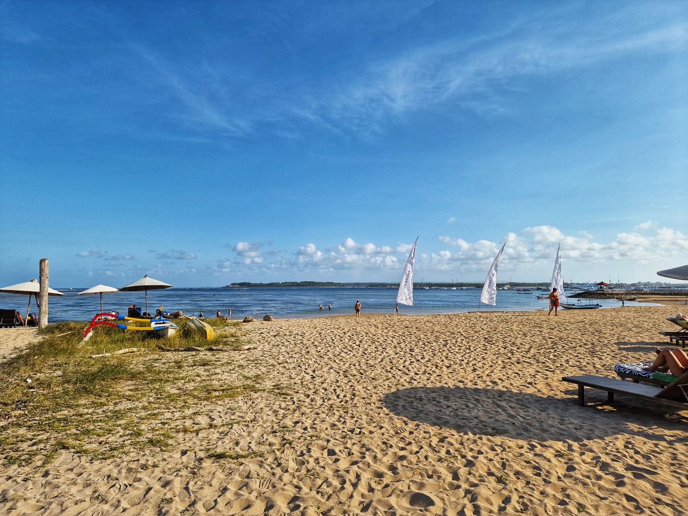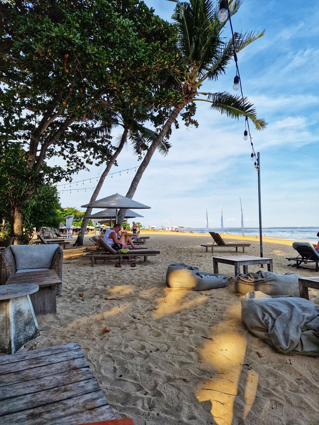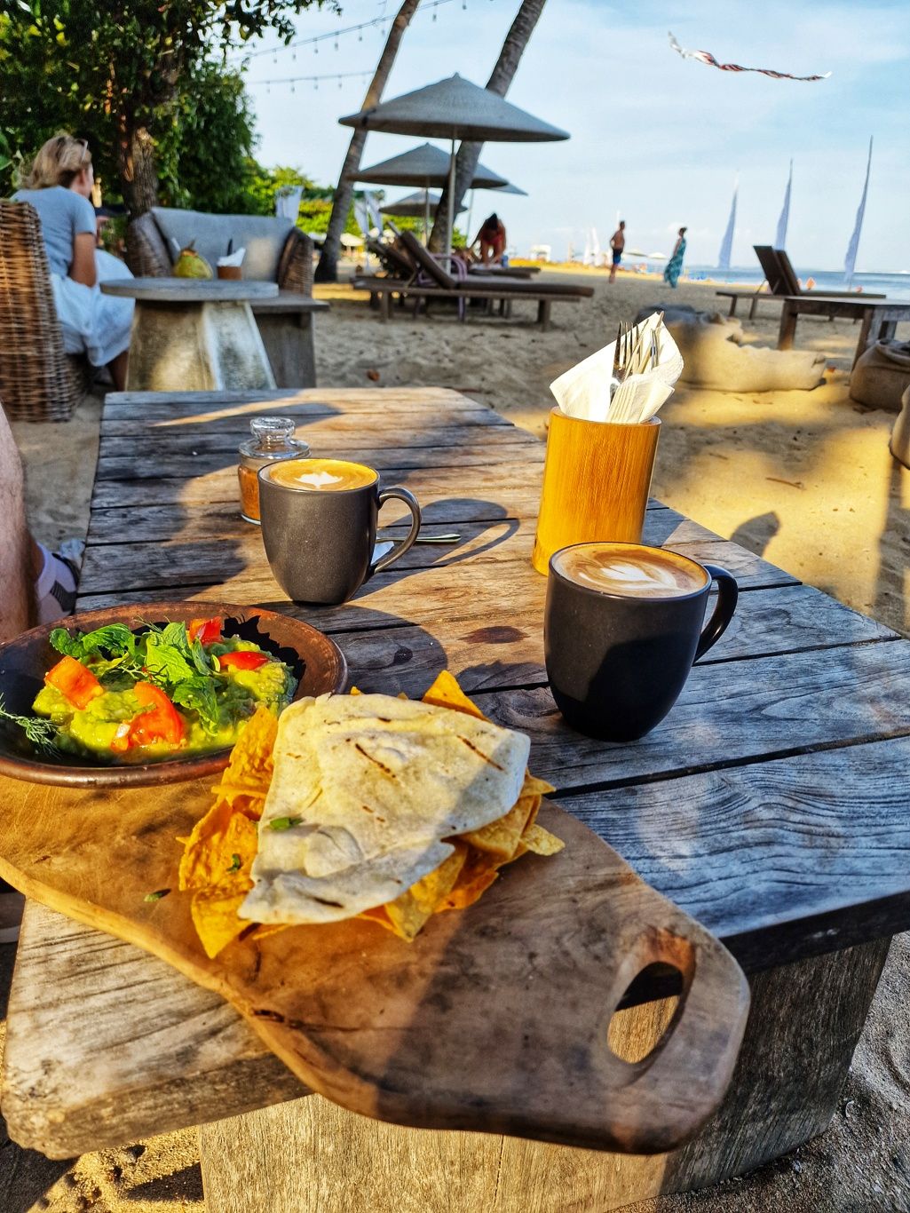 Irgendwie sind wir dann aber am Strand von Sanur angekommen. An einer schön angelegten Strandpromenade mit jede Menge kleinen Bars und Restaurants tranken wir einen leckeren Cappuccino mit Blick aufs Meer.