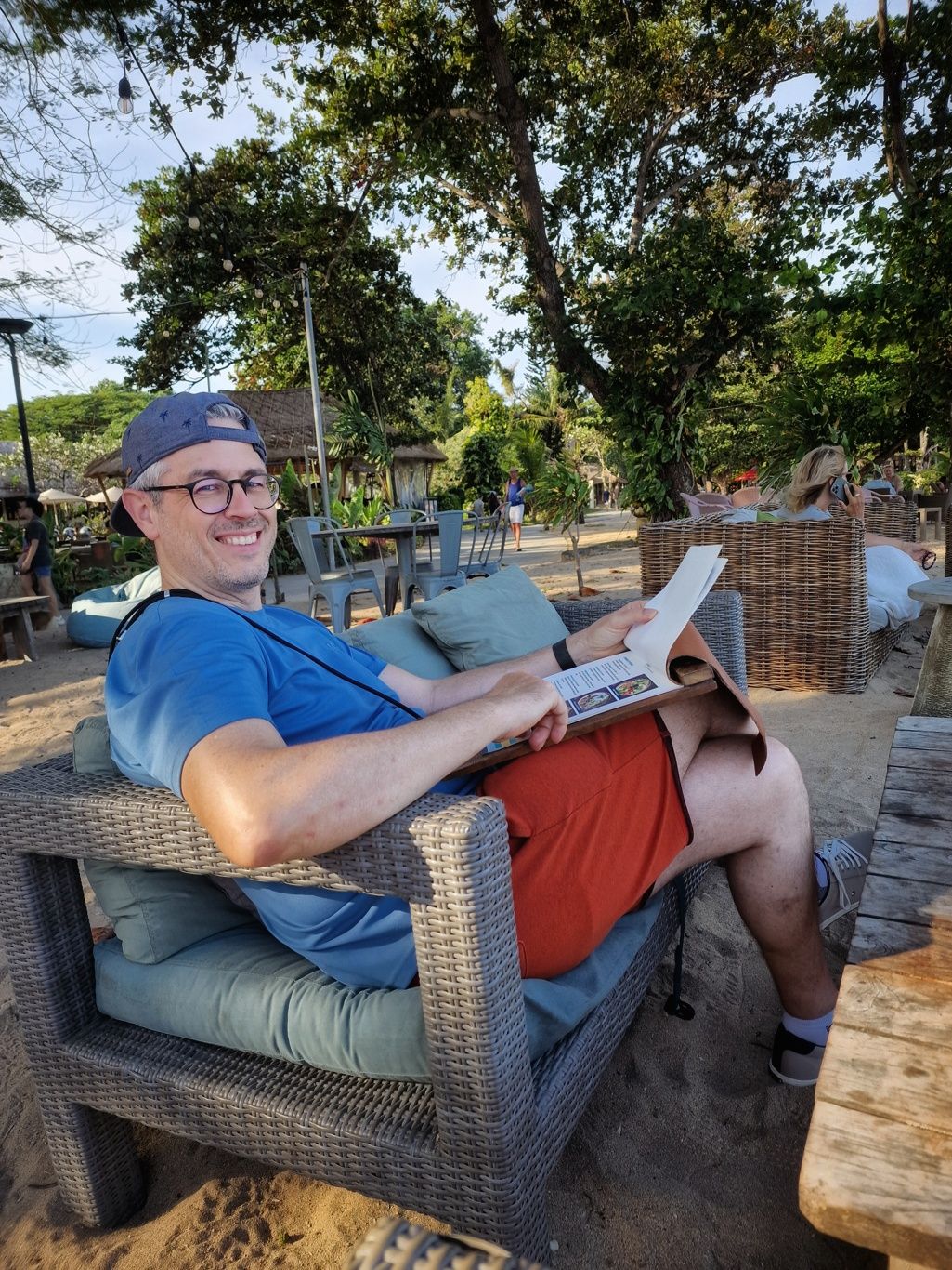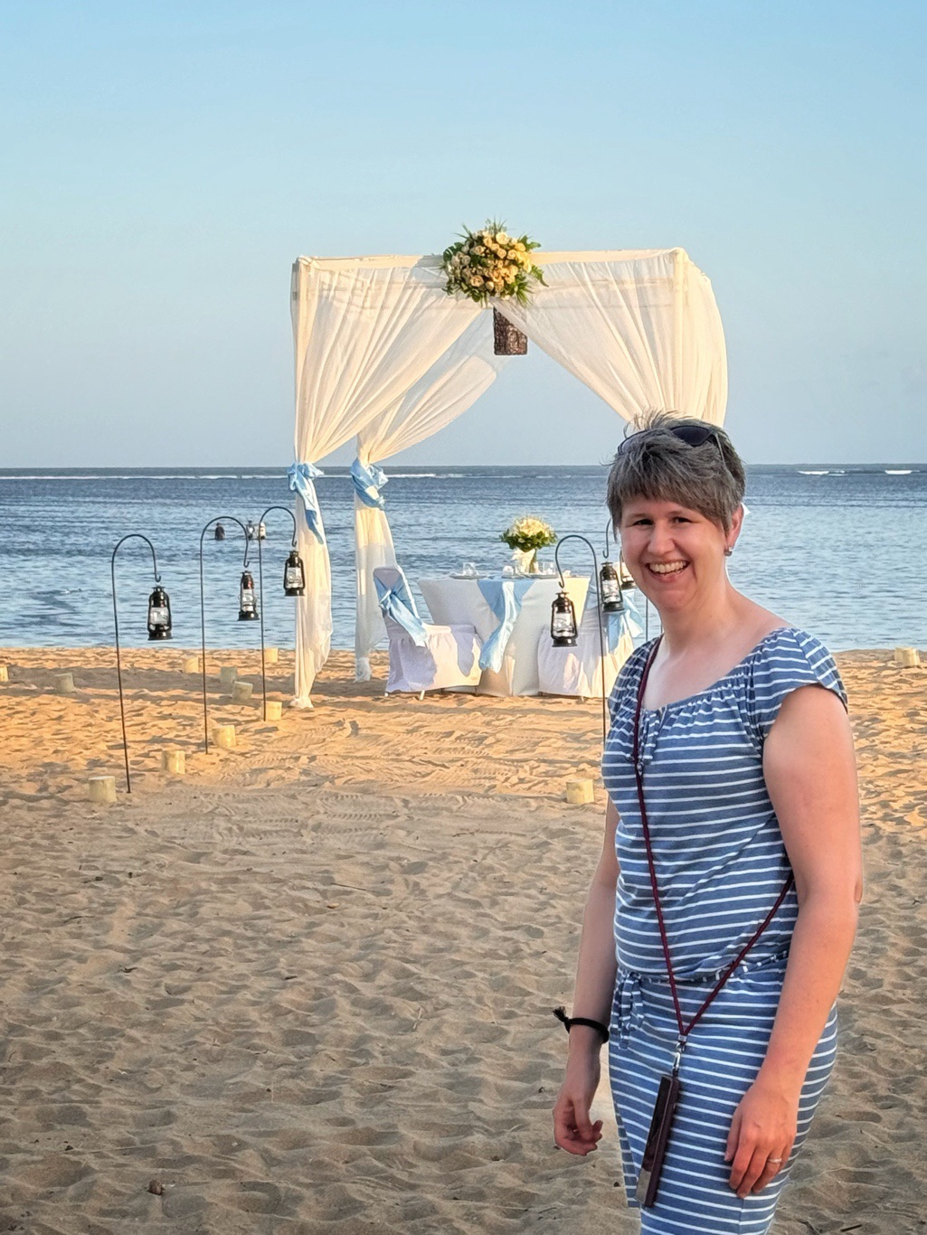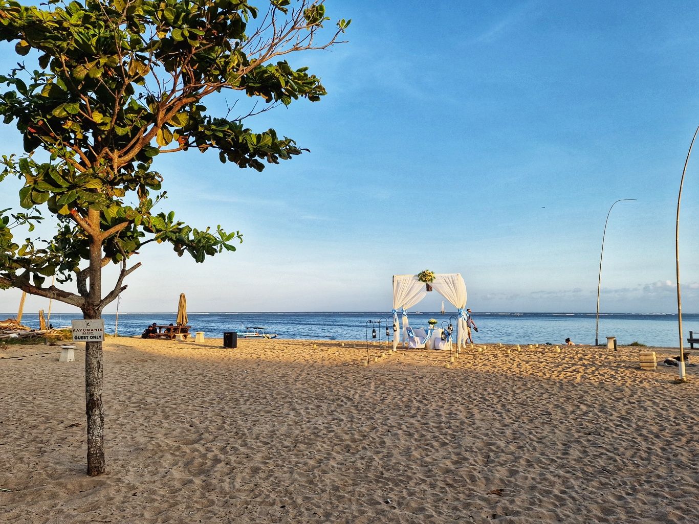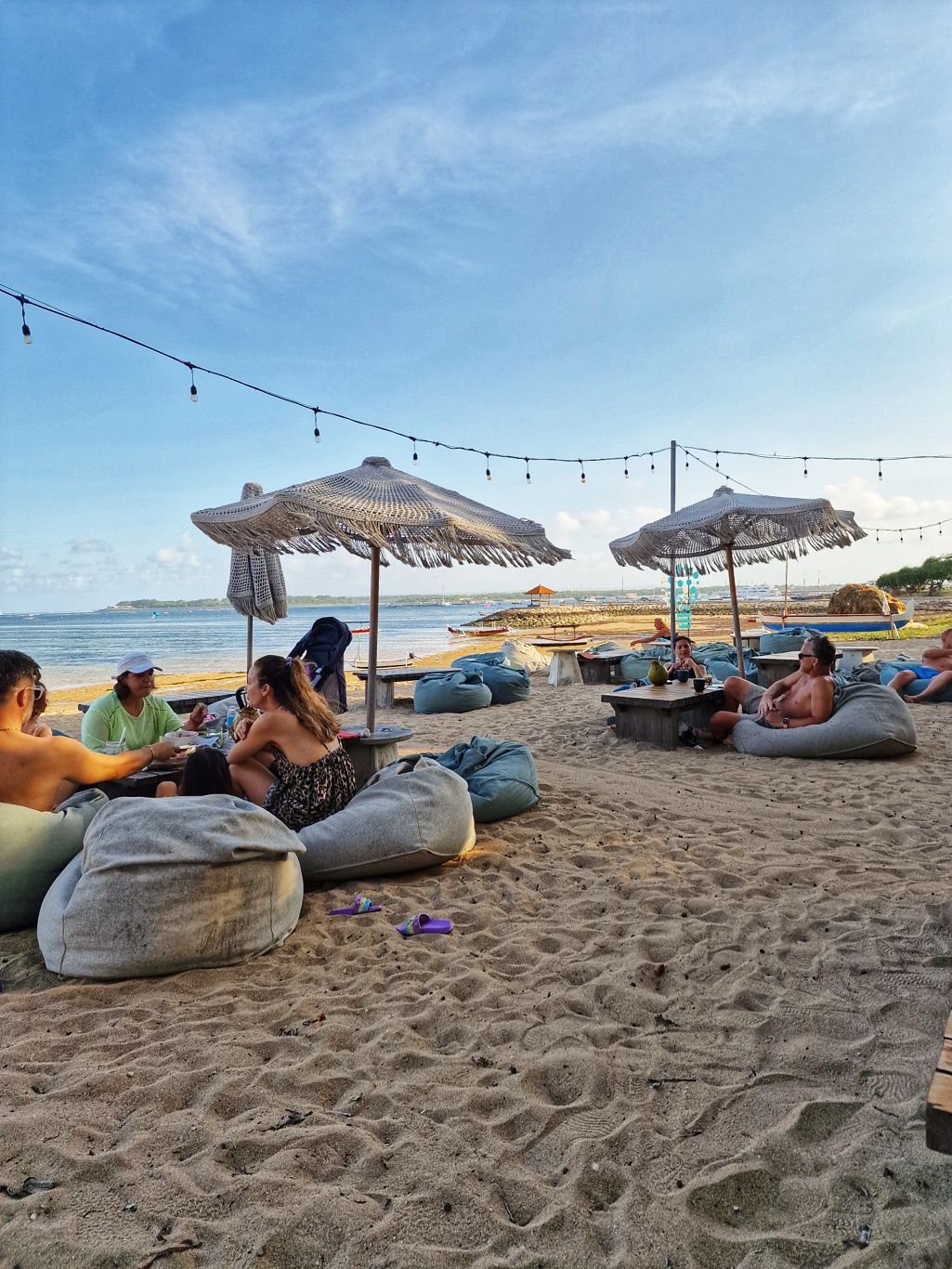 Irgendwie sind wir dann aber am Strand von Sanur angekommen. An einer schön angelegten Strandpromenade mit jede Menge kleinen Bars und Restaurants tranken wir einen leckeren Cappuccino mit Blick aufs Meer.
