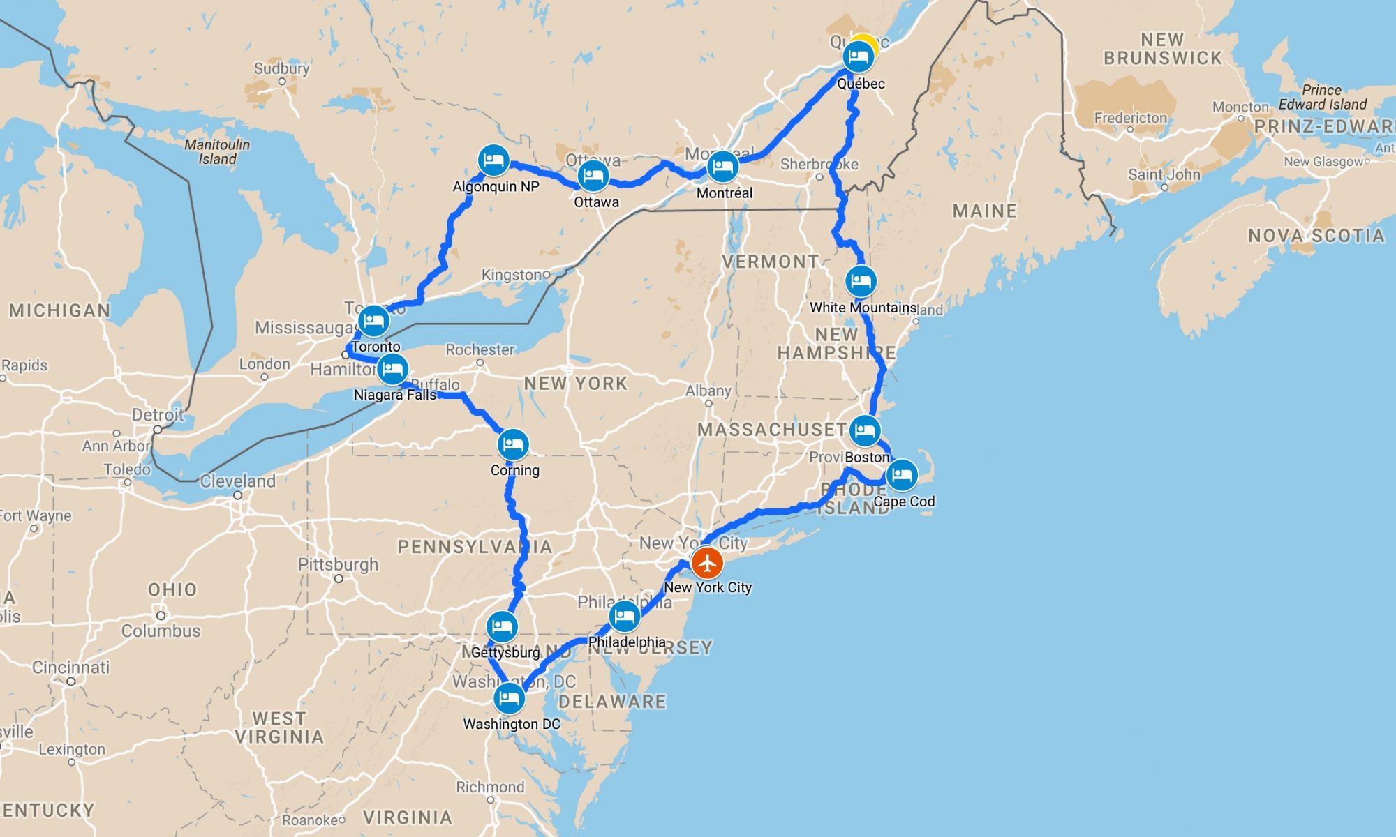 Heute haben wir es mal ganz ruhig angehen lassen. Nach dem Frühstück noch ein kleiner Spaziergang entlang der Market Street in Corning und dann gegen 11 Uhr ins Auto zur Weiterfahrt nach Gettysburg, ca. 235km nach Süden. Dabei verließen wir den Bundesstaat New York und erreichten Pennsylvania.